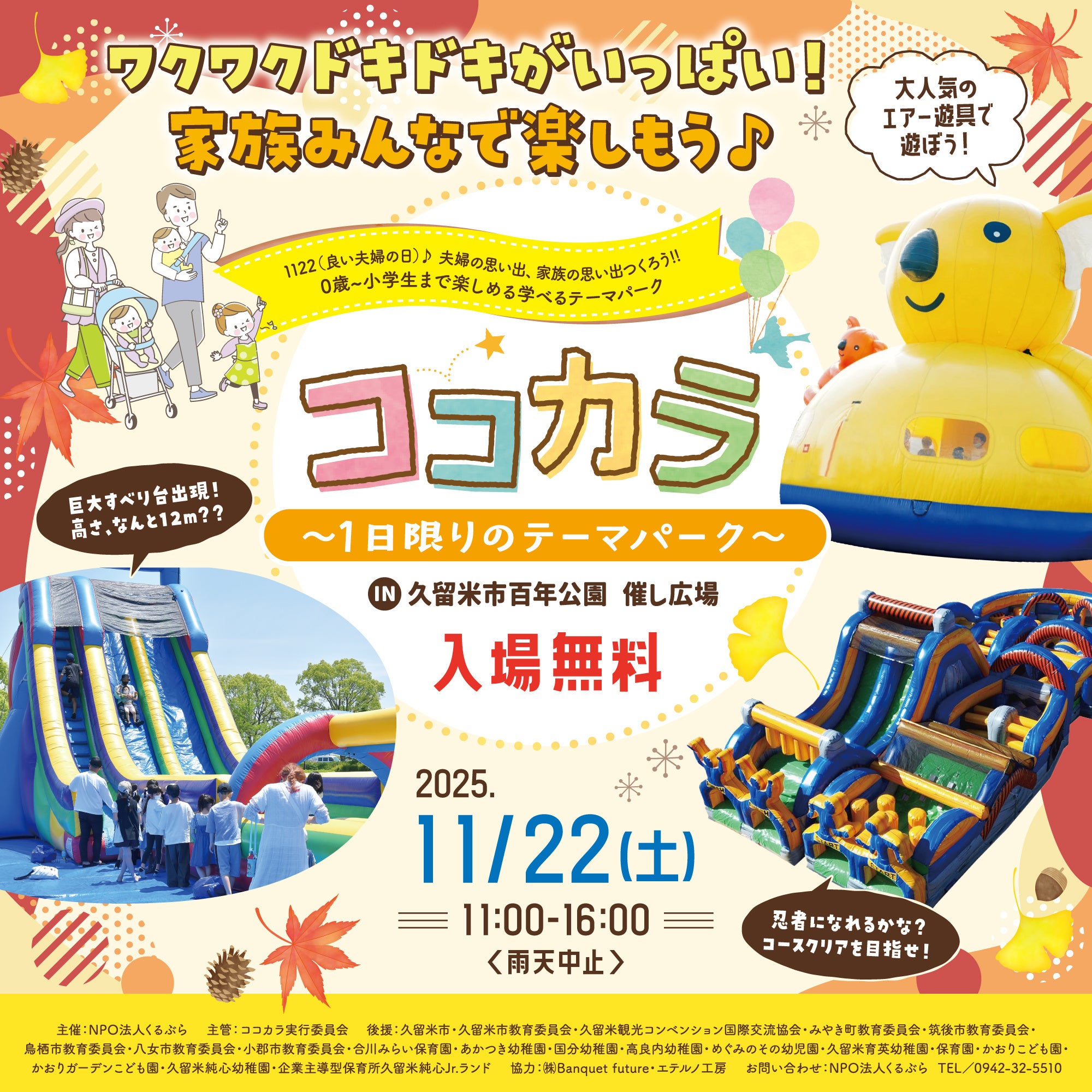 🎡✨久留米百年公園が“1日限りのテーマパーク”に大変身✨🎡【入場無料・参加自由】11月22日(土)11:00〜16:00【久留米百年公園 催し広場】