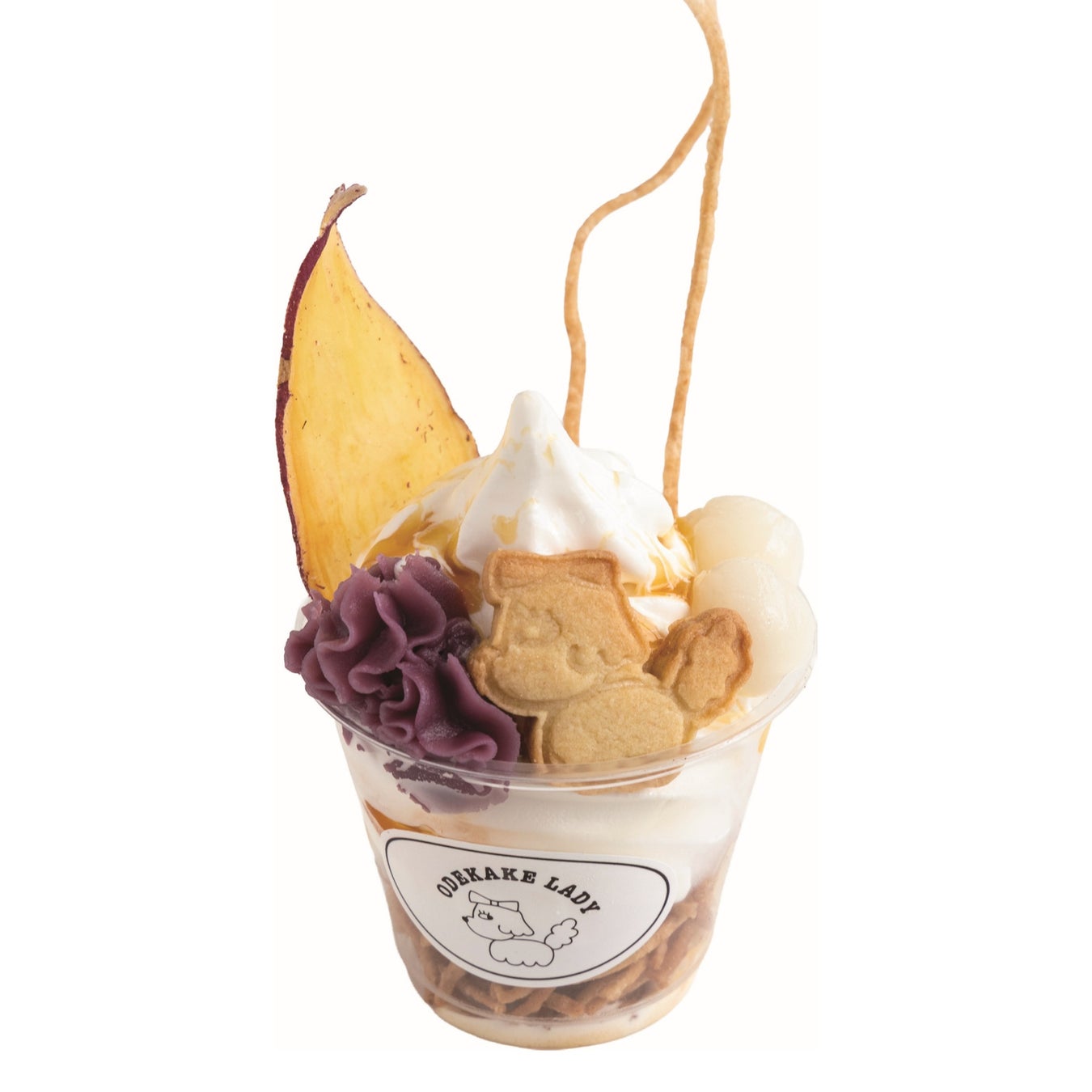 同駅内で常陸秋そばを提供する「そば元本舗」から仕入た揚げ蕎麦にシナモンシュガーを合わせて極上パフェに仕上げました。ミルク感たっぷりの常陸の郷牛乳を使ったソフトクリームに、地元産サツマイモのペーストに蜜芋ソース、紫芋のペーストをトッピング。サツマイモの自然な甘さを味わえるバランスのとれた甘さも絶品です。