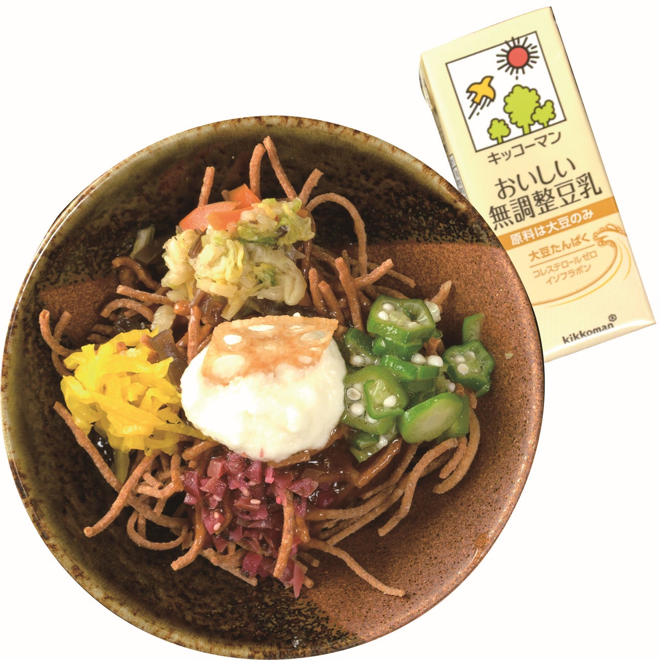 香ばしく揚げた常陸秋そばの上に、県産野菜をたっぷりの和風おろし餡がとろ~り。キッコーマン豆乳200mlを加えてマイルドに味変。さらにごま・ラー油・ゆず胡椒・カレー粉の順に味変することで進化する味わいにワクワクが止まりません!これぞ元祖シン・茨城あげそばの貫禄です!
