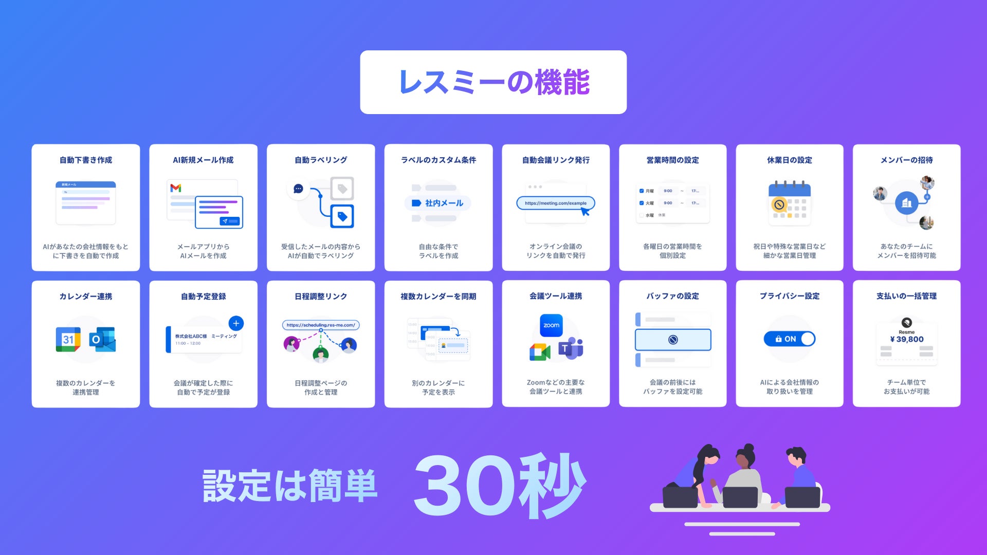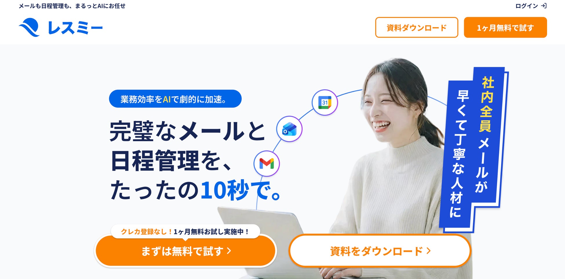 AI秘書ツール「レスミー」誕生。メール下書き・日程調整・カレンダー管理まで、これ一つで完結。ーあなたの“仕事時間”を3秒で変える。1ヶ月無料トライアル開始。