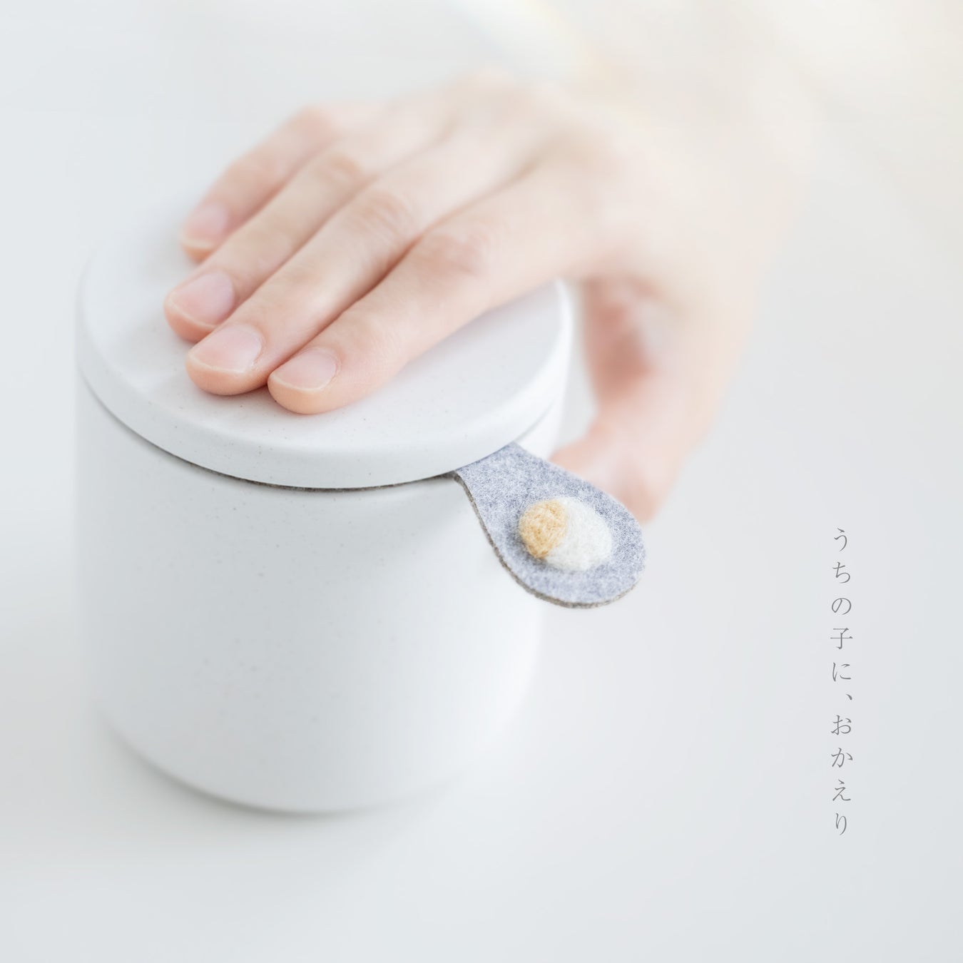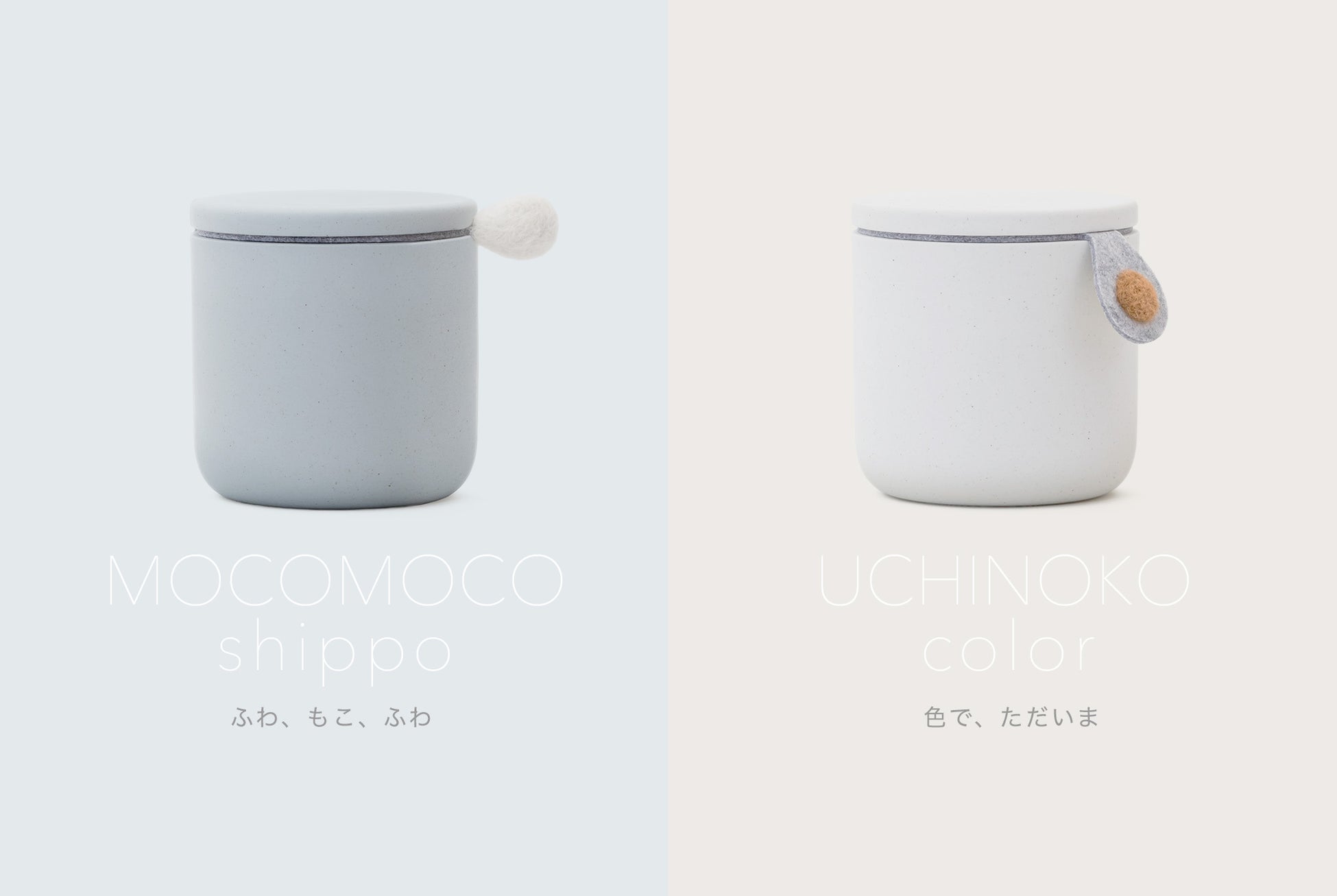 その背景にあるのは「うちの子らしく」という家族の想い。陶器と天然ウールという異素材の組み合わせから生まれた新しい発想で、暮らしとインテリアにそっと溶け込むお骨壷です。