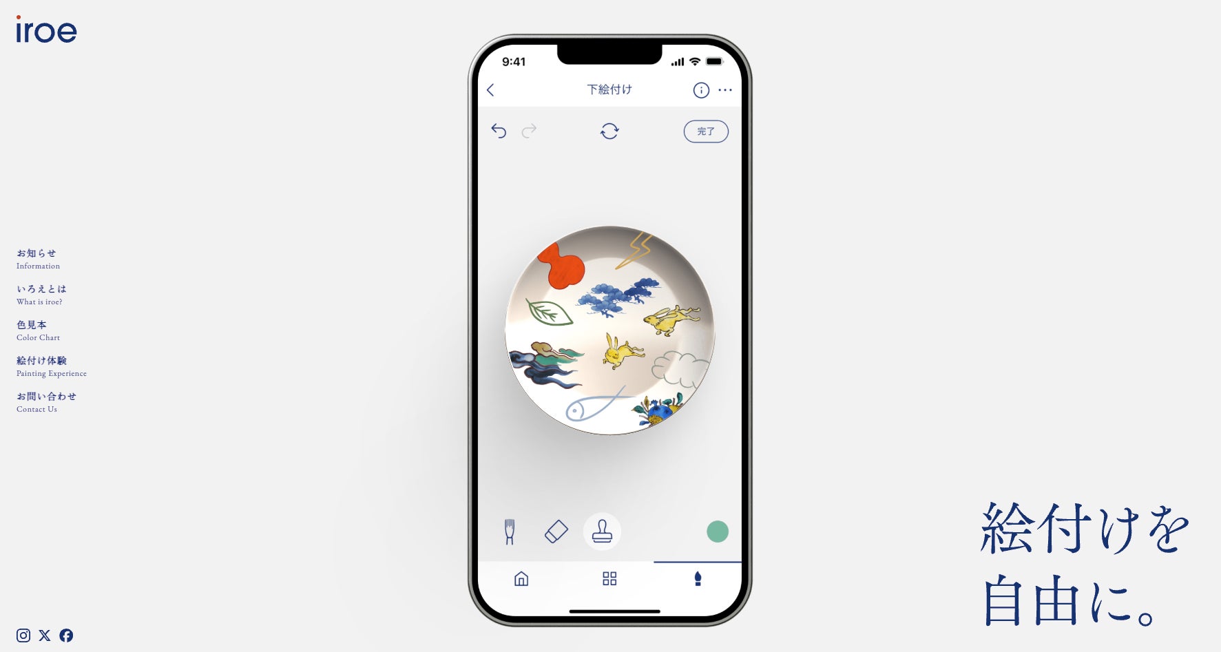 伊万里・有田焼の伝統的な和の美しさと、デジタルならではの手軽さを融合させた、絵付け体験アプリです。