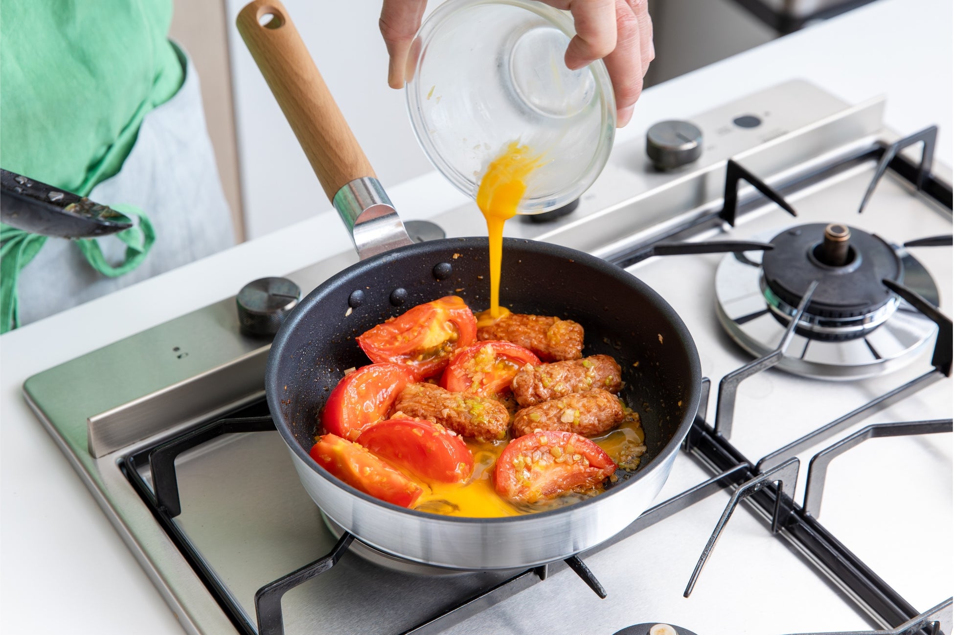 •モーニングサーブ 4本 •トマト 中玉1個 •卵 1個 •顆粒コンソメ 小さじ1/2 •長ネギ 5cm •ごま油 小さじ1 •ごはん •