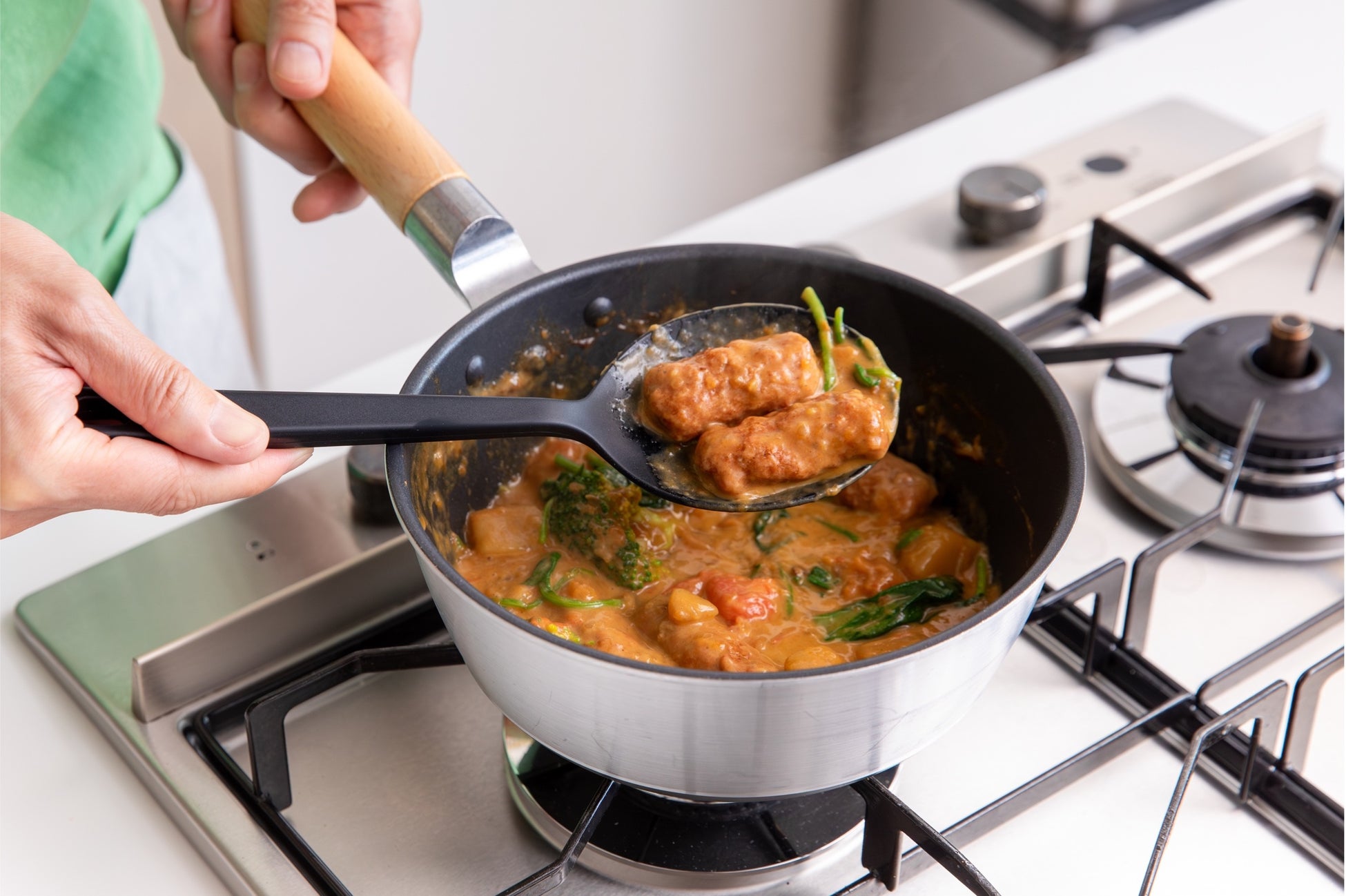•モーニングサーブ 5本 •残ったカレー 1人前分(または レトルトカレー) •ヨーグルト 大さじ3 (または 生クリーム 15g) •トマト 1/4個 •ほうれん草 適量 •ブロッコリー 適量 •バター 10g •塩 少々 •ごはん