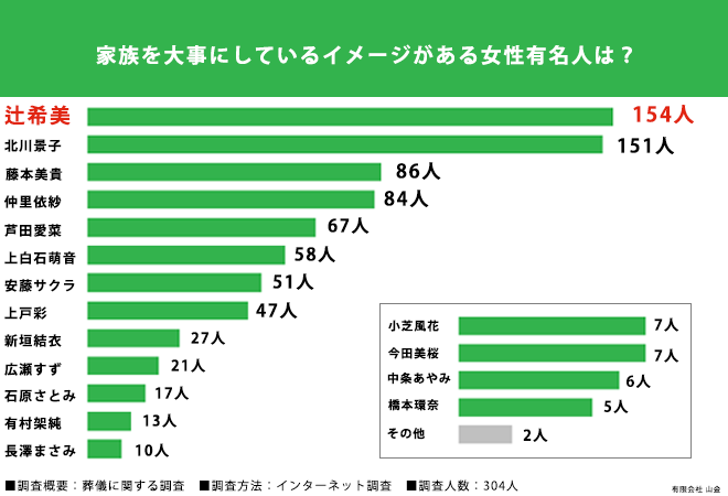 今回は、家族葬を手掛ける山金葬祭が、葬儀に参列したことがある20代の男女304を対象に、「家族を大事にしているイメージがある女性有名人ランキング調査」を実施しました。