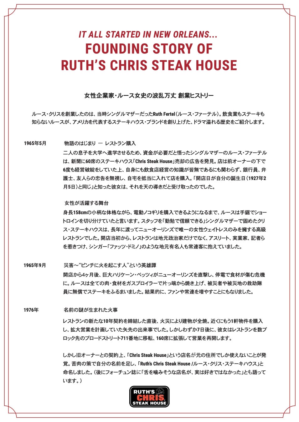 1965年、ルース・ファーテルがニューオーリンズに創業。文化と食の都である同地において、アメリカ最高峰のステーキを「シズルプレート」で提供する独自のスタイルを確立しました。