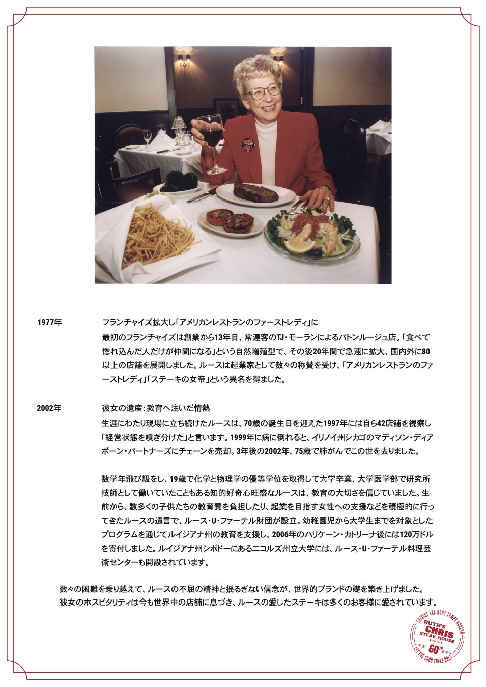 ルース クリス ステーキハウス 創業60周年記念 2025/10/30(木)から特別コース提供開始