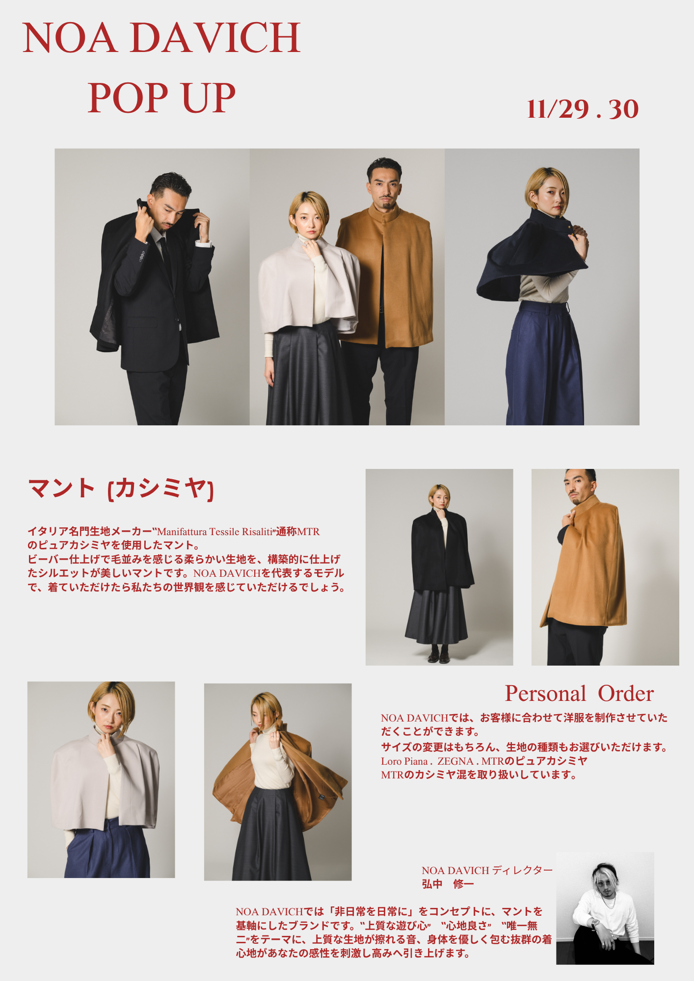 マントを基軸にモードな服作りをしているブランド「NOA DAVICH」の1周年POP UP & スペシャルトークショーを東京で開催!