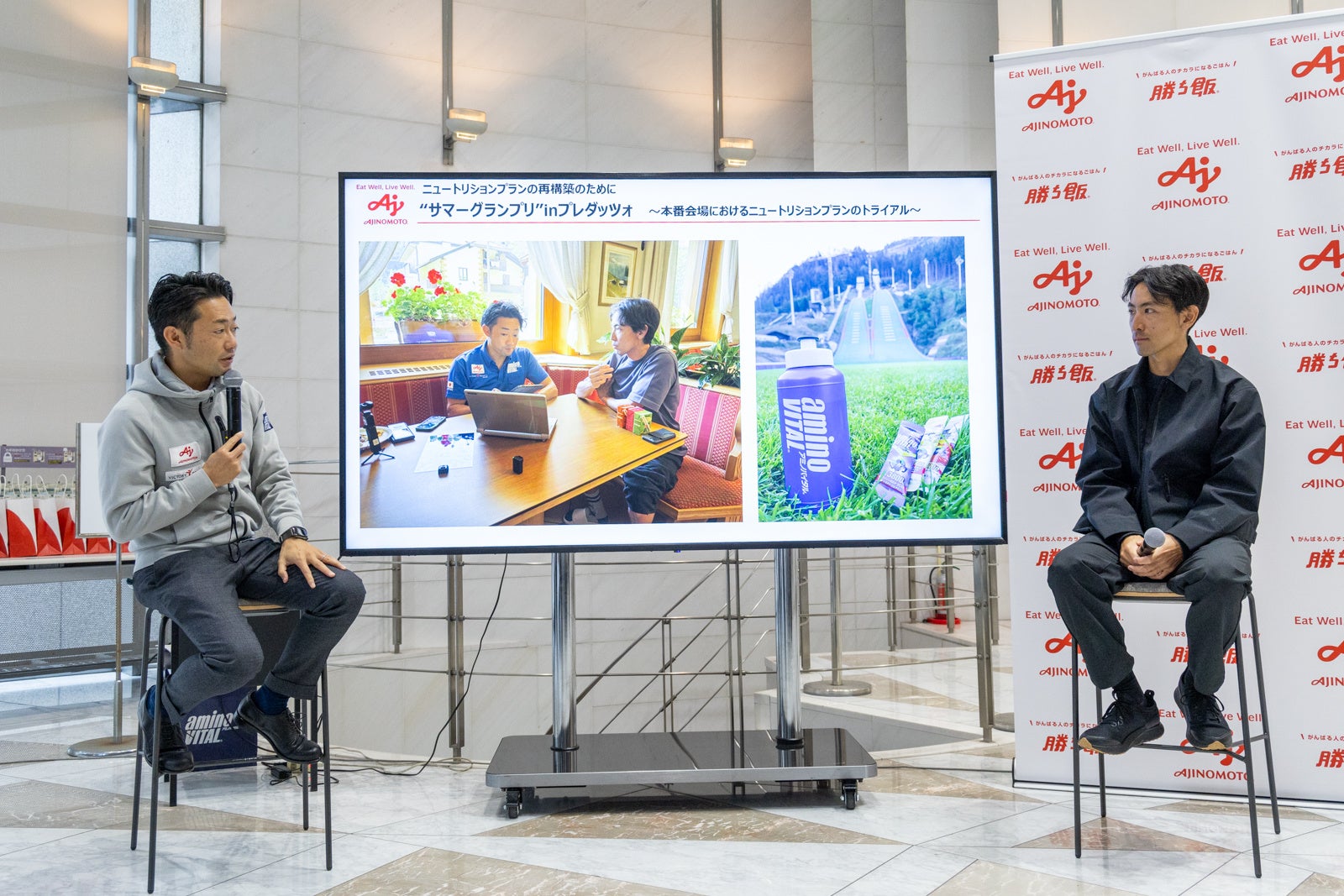 当日は、味の素㈱「ビクトリープロジェクト®」のサポートディレクター上野氏とのトークセッションを実施。9年間にわたる栄養サポートの取組みや、集大成となるミラノ・コルティナ2026冬季オリンピックに向けた意気込みについて語っていきただきました。
