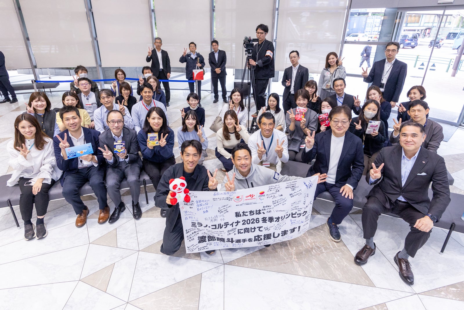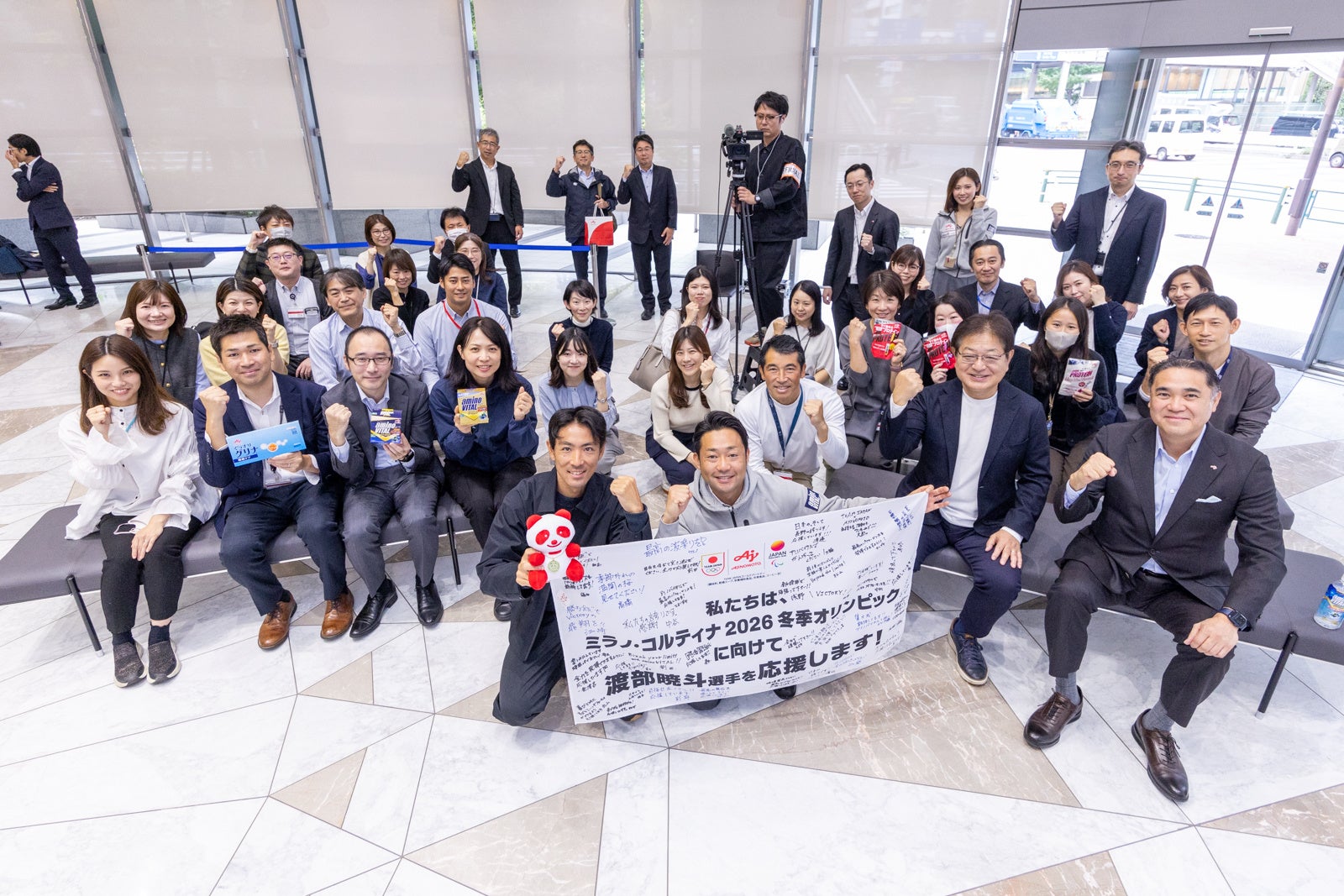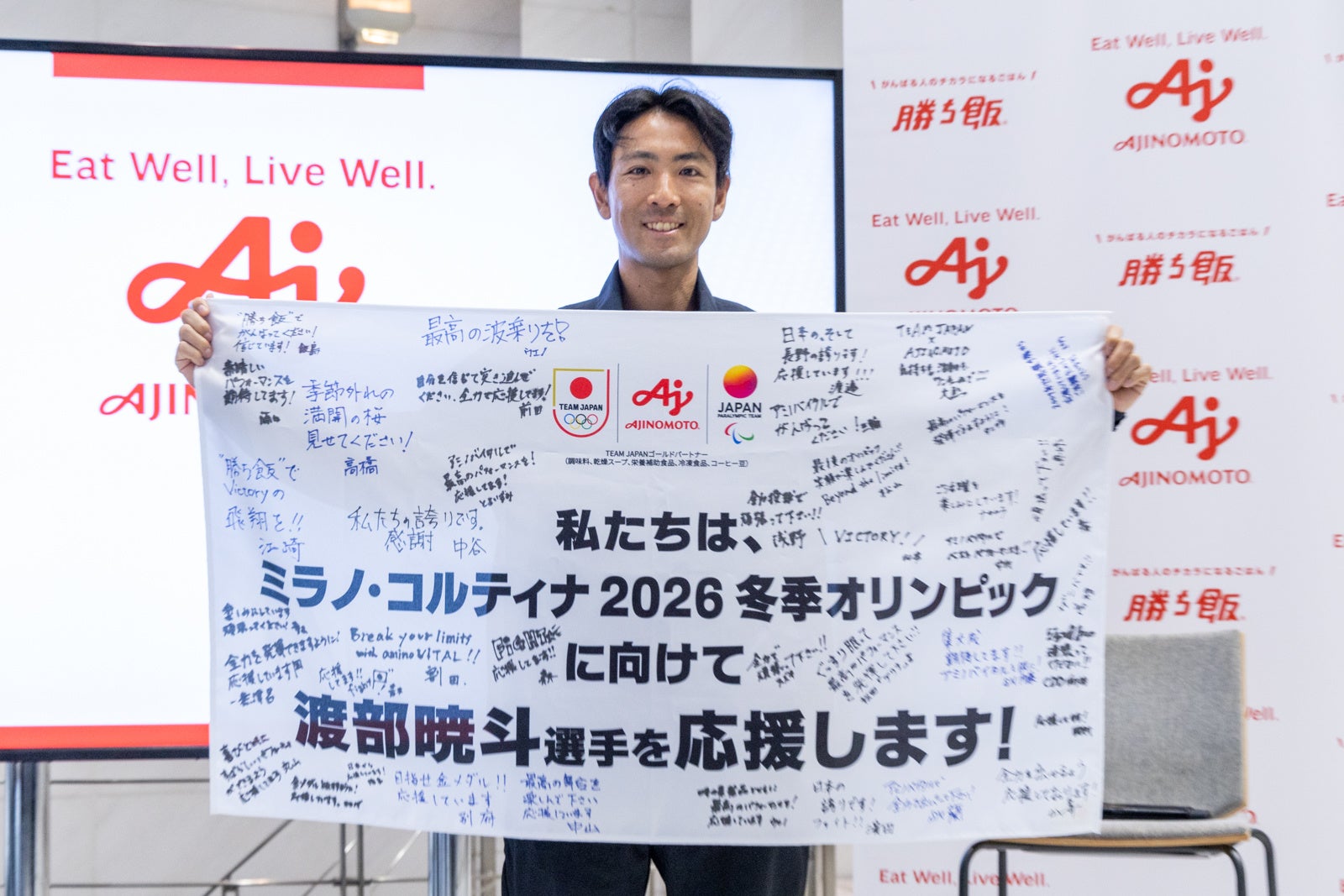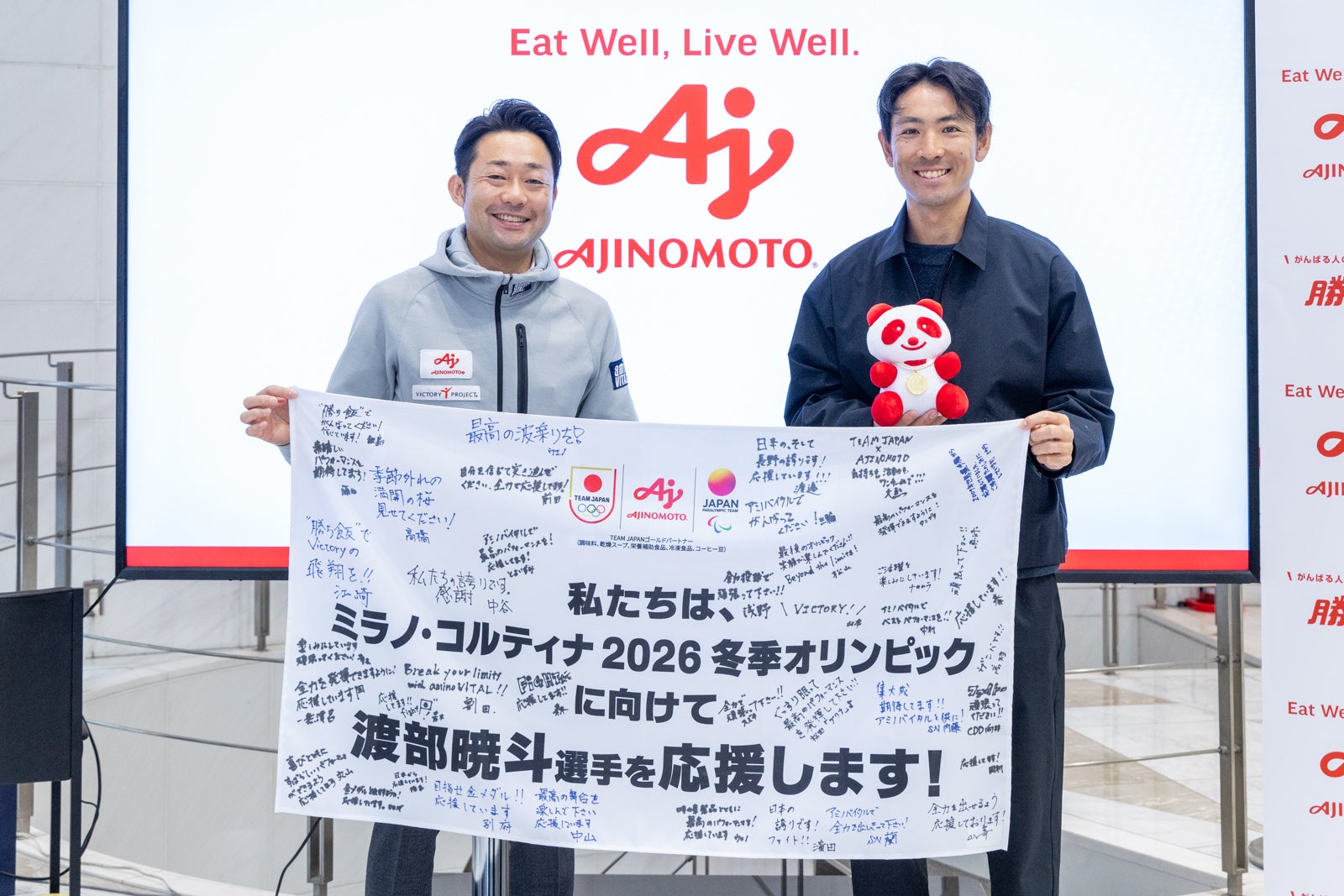 集大成となるミラノ・コルティナ2026に向けて「このまま終わるつもりはない!」と力強いコメント!味の素社員から“横断幕”と”アジパンダ”でエール!