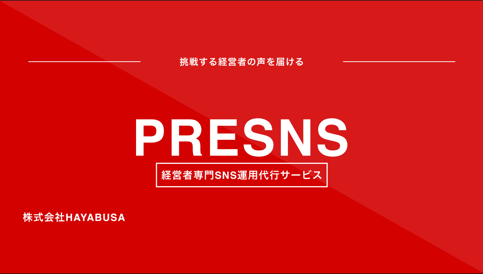 株式会社HAYABUSAは、経営者の考えや価値観を軸に発信し、企業の信頼形成・採用・集客を中長期で高めるSNS運用代行サービス「PRESNS」を正式リリースしました。