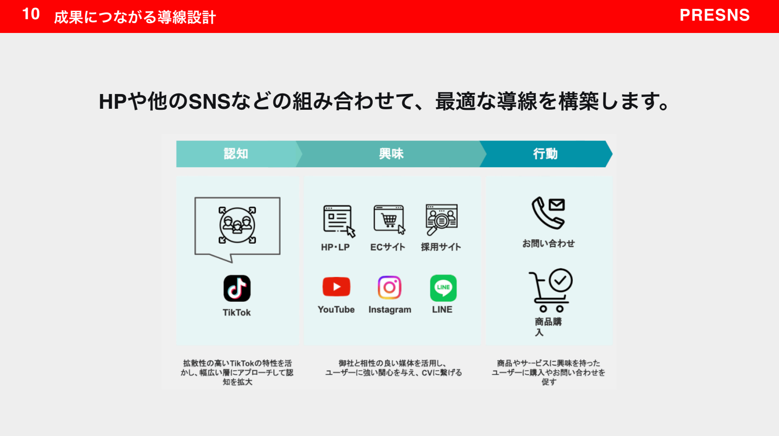 採用応募・商談・問い合わせにつながる関係性構築型の運用を行います。