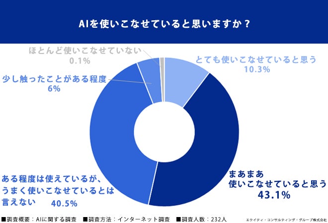 一方で、「ある程度は使えているが、うまく使いこなせているとは言えない」と回答した人も40.5%にのぼりました。
