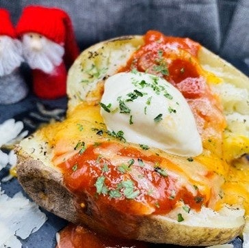 海外で話題のジャケットポテト。ほくほくのジャガイモに濃厚ミートソースとたっぷりとろ~りwhiteチーズをオン!大人も子供も大好きな味です。