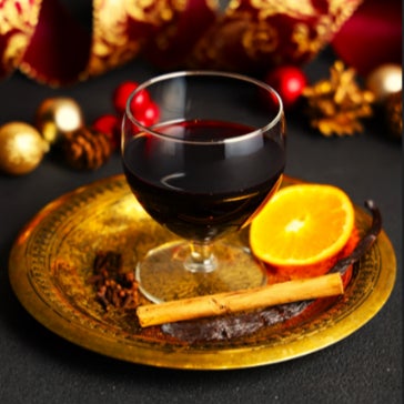 スパイスとシトラスビール、ウガンダ産のバニラビーンズを漬け込んだ特別な香り。仕上げに花の蜜とアプリコットのドライフルーツを入れた特製グリューワイン。