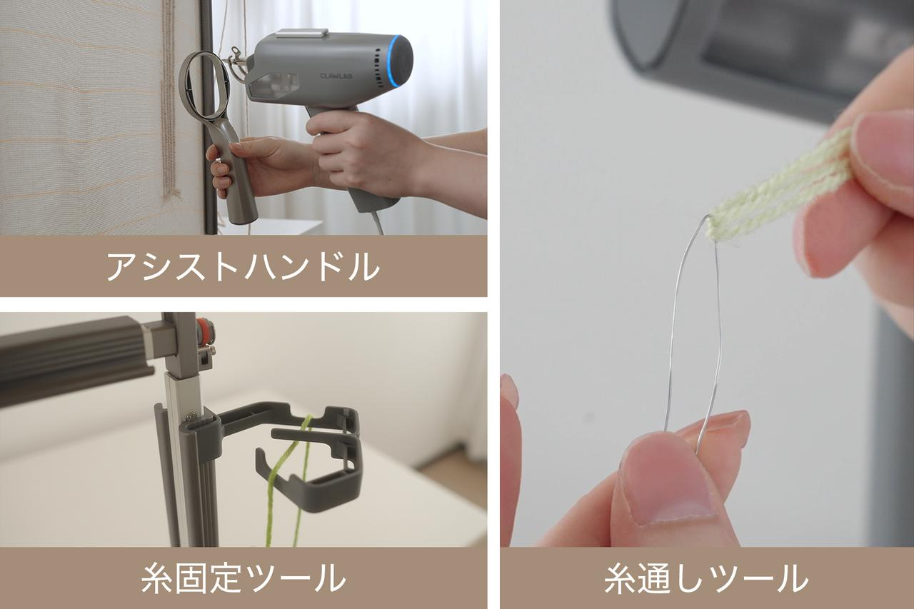 糸通しツールやフレーム用糸固定ツールで扱いやすいさを向上。