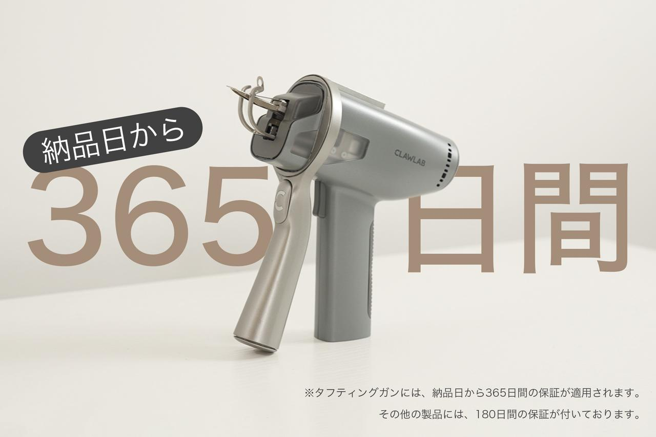 Makuakeでご購入いただいたサポーターの皆様には、タフティングガンには納品日から365日間の保証を、その他の製品には180日間の保証をお付けいたします。