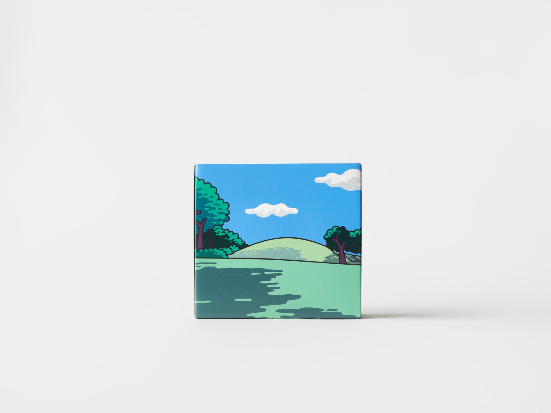 ボックスパッケージには、多摩市民の原風景ともいえる、緑豊かな多摩市鶴牧東公園の風景が描かれています。