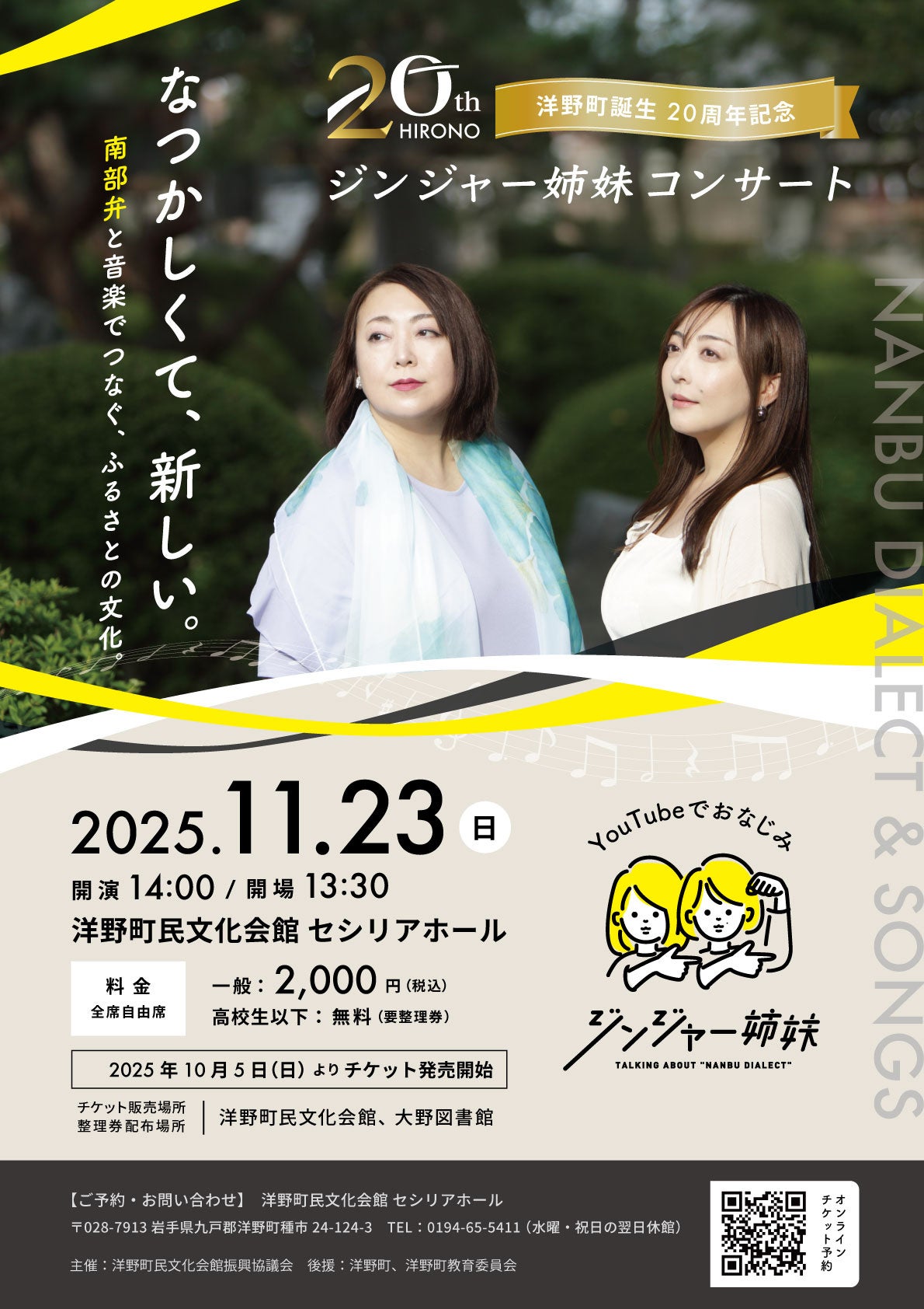 11月23日(日)洋野町誕生20周年記念 ジンジャー姉妹コンサート開催