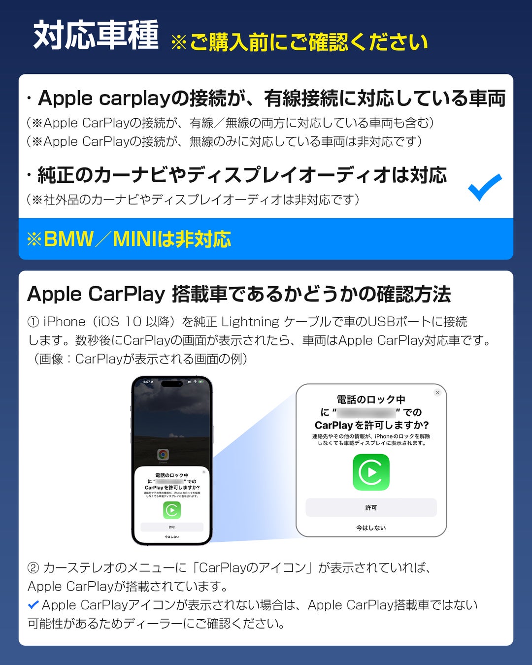 ・ご使用の車両が有線CarPlay/Android Autoに対応していることをご確認ください。