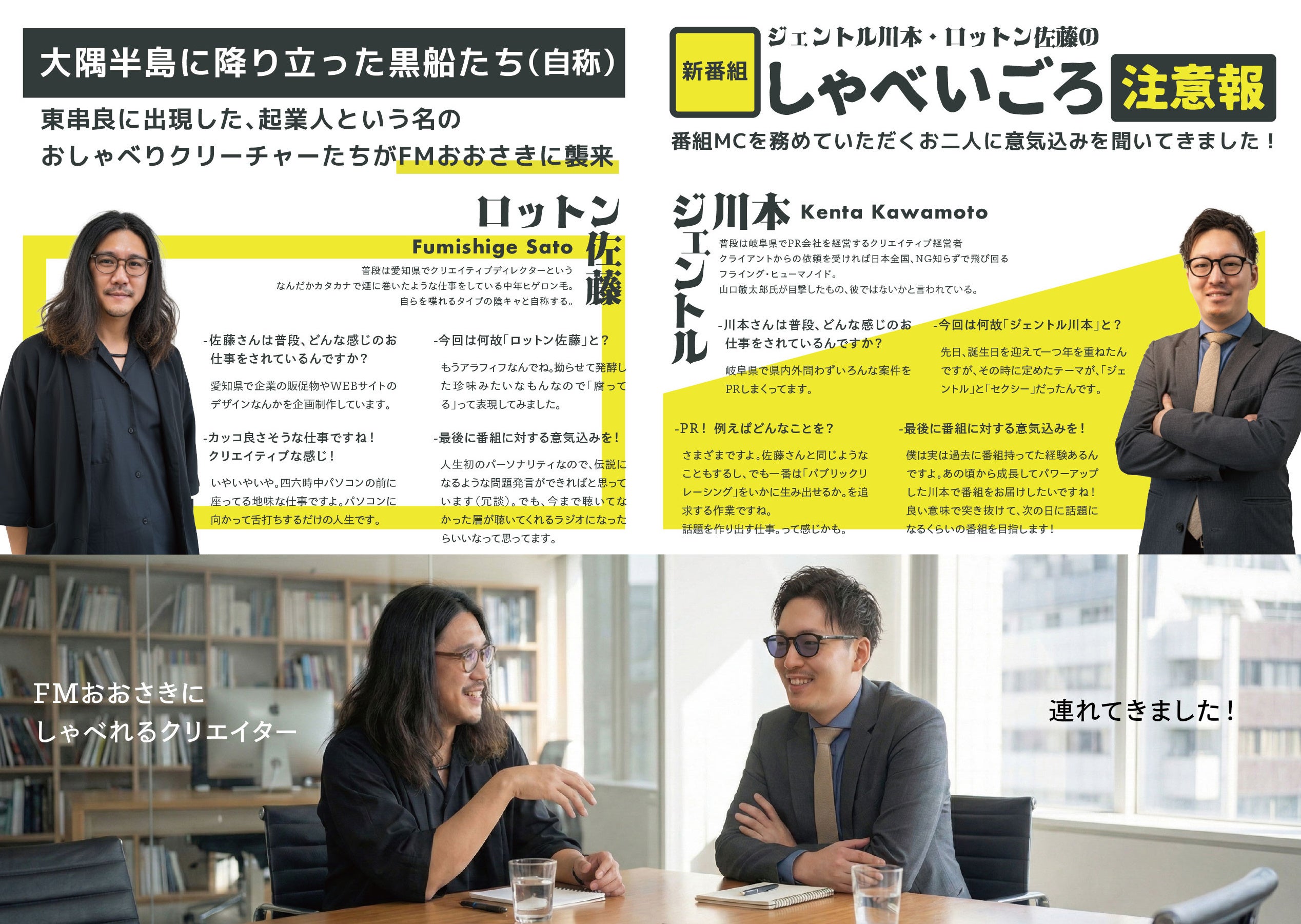 『ジェントル川本・ロットン佐藤の しゃべいごろ注意報』を、2026年1月よりFMおおさき(89.9MHz)にて放送開始します。