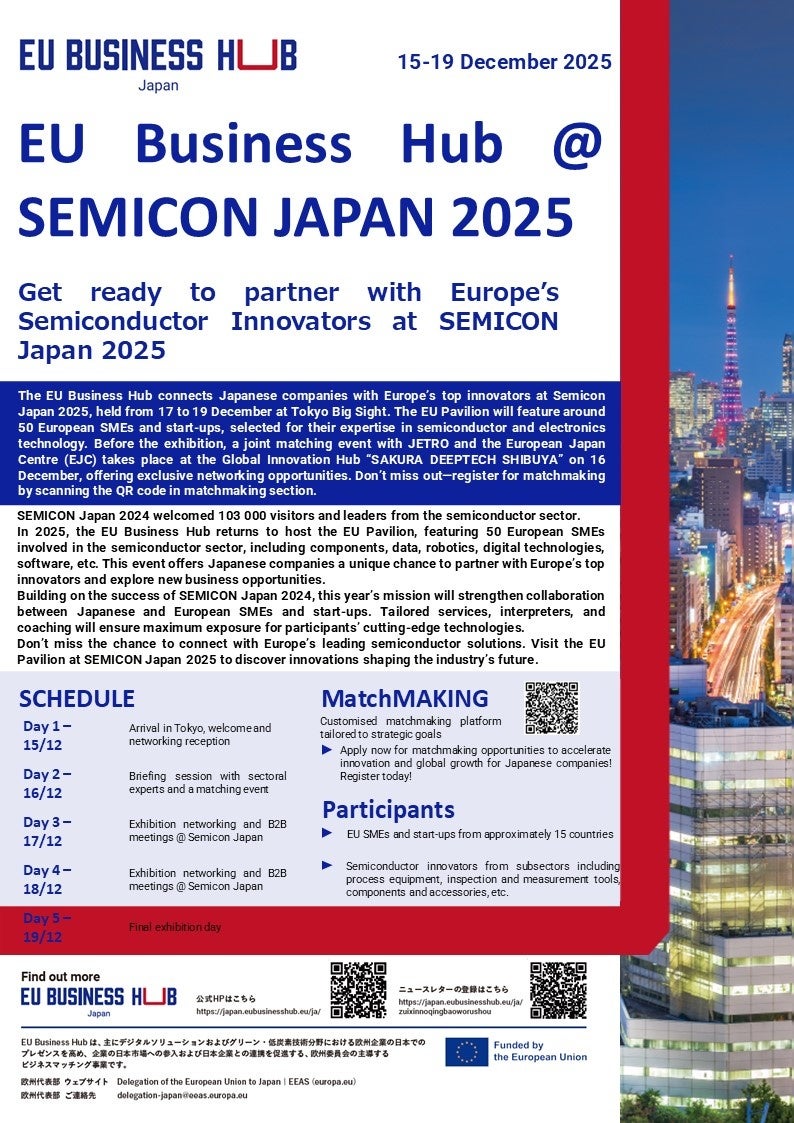 Semicon Japan 2025 : https://japan.eubusinesshub.eu/ja/missions-catalogue/eu-business-hub-semicon-japan-2025