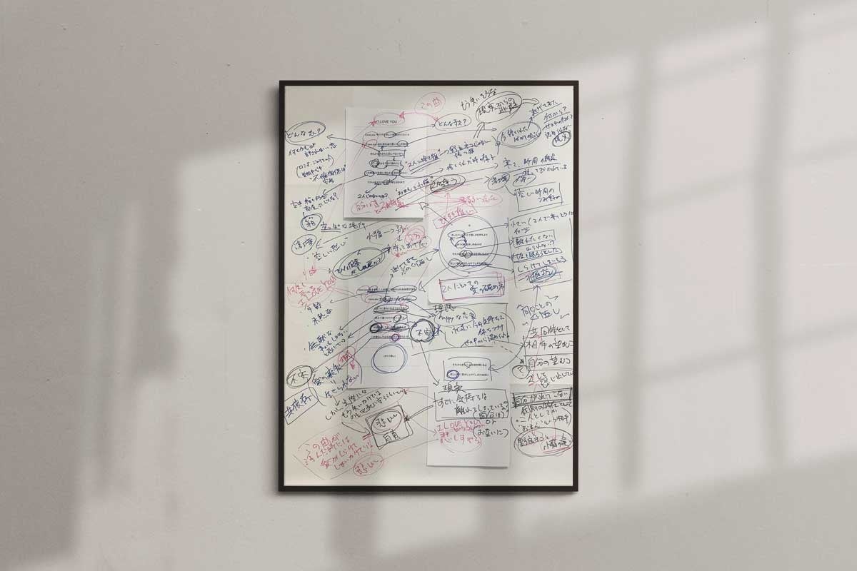歌詞の背景や思想を掘り下げ、大きな紙いっぱいに書き連ねたその思索の跡は、彼の成長と共に幾度と上書きされ“アート”のように育っていきました。