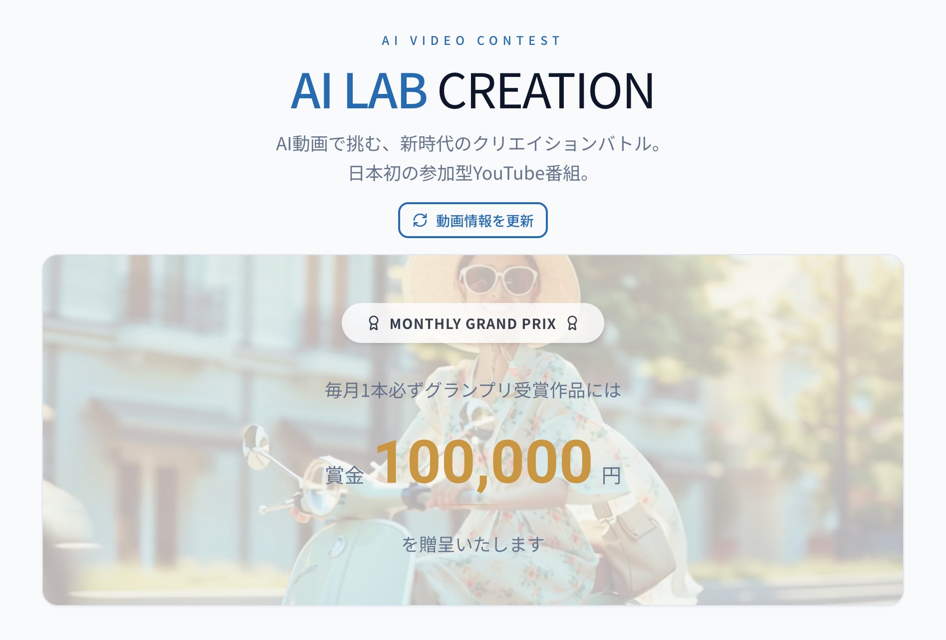 AI動画で競う“日本初の参加型YouTube番組”を正式ローンチ。AI LAB CREATION、毎月賞金10万円の投稿型コンテストを開始