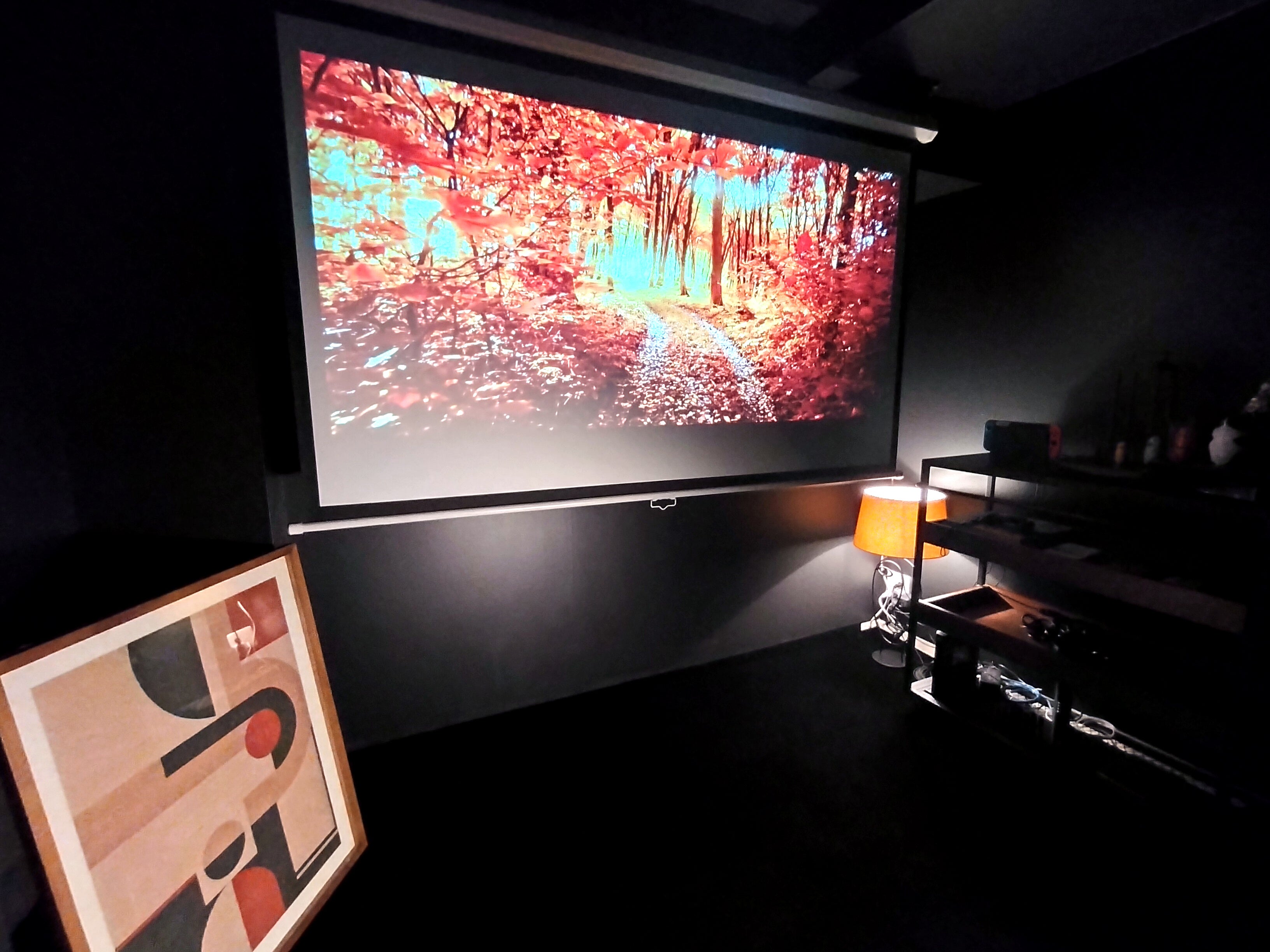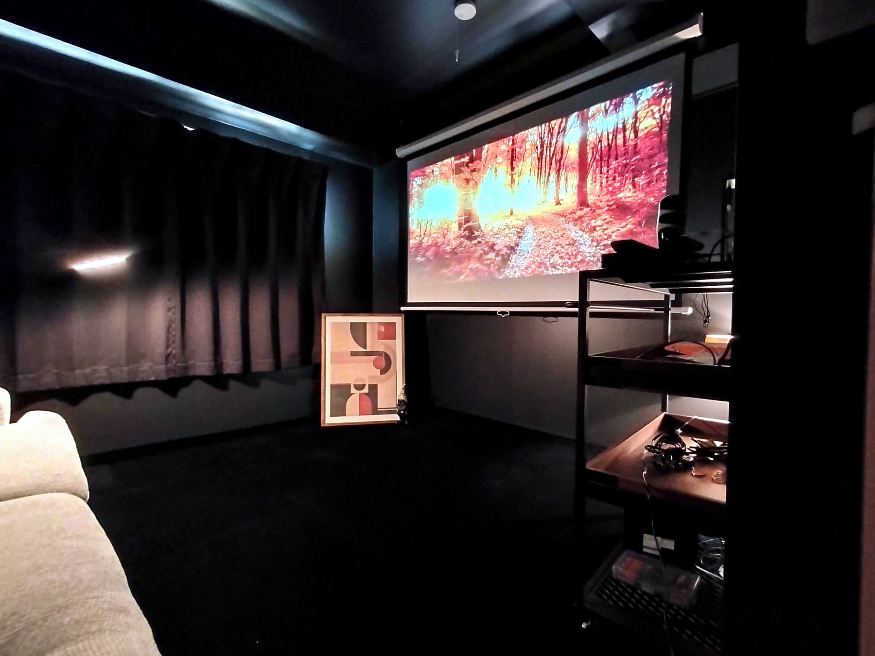 ホームシアター: 壁や床の反射を抑え、プロジェクターのコントラストを最大化