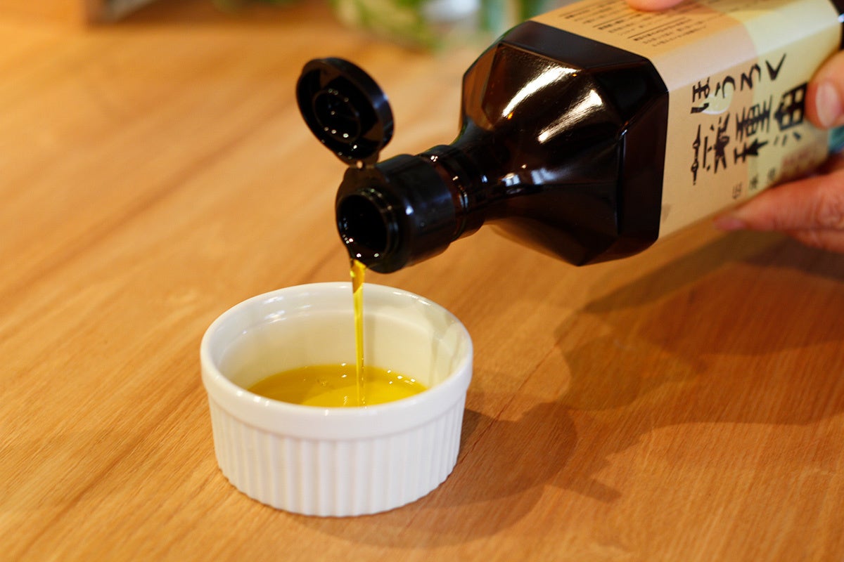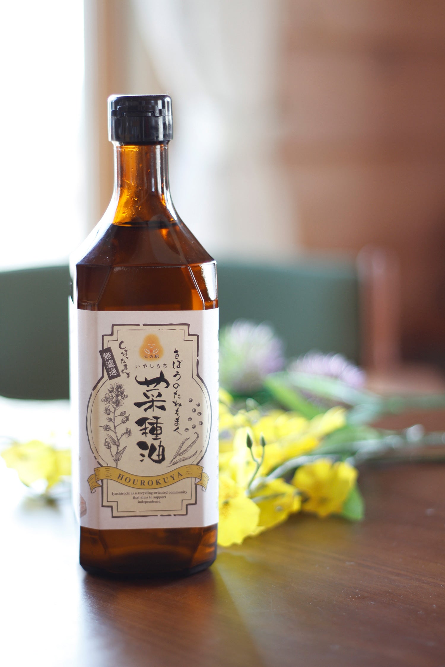 しぼりたての旨味と生命の粒子をそのまま閉じ込めた、黄金に輝く“生きた油”として、ほうろく屋の台所(心の駅 いやしろち内)の店頭および直営EC限定で提供します。
