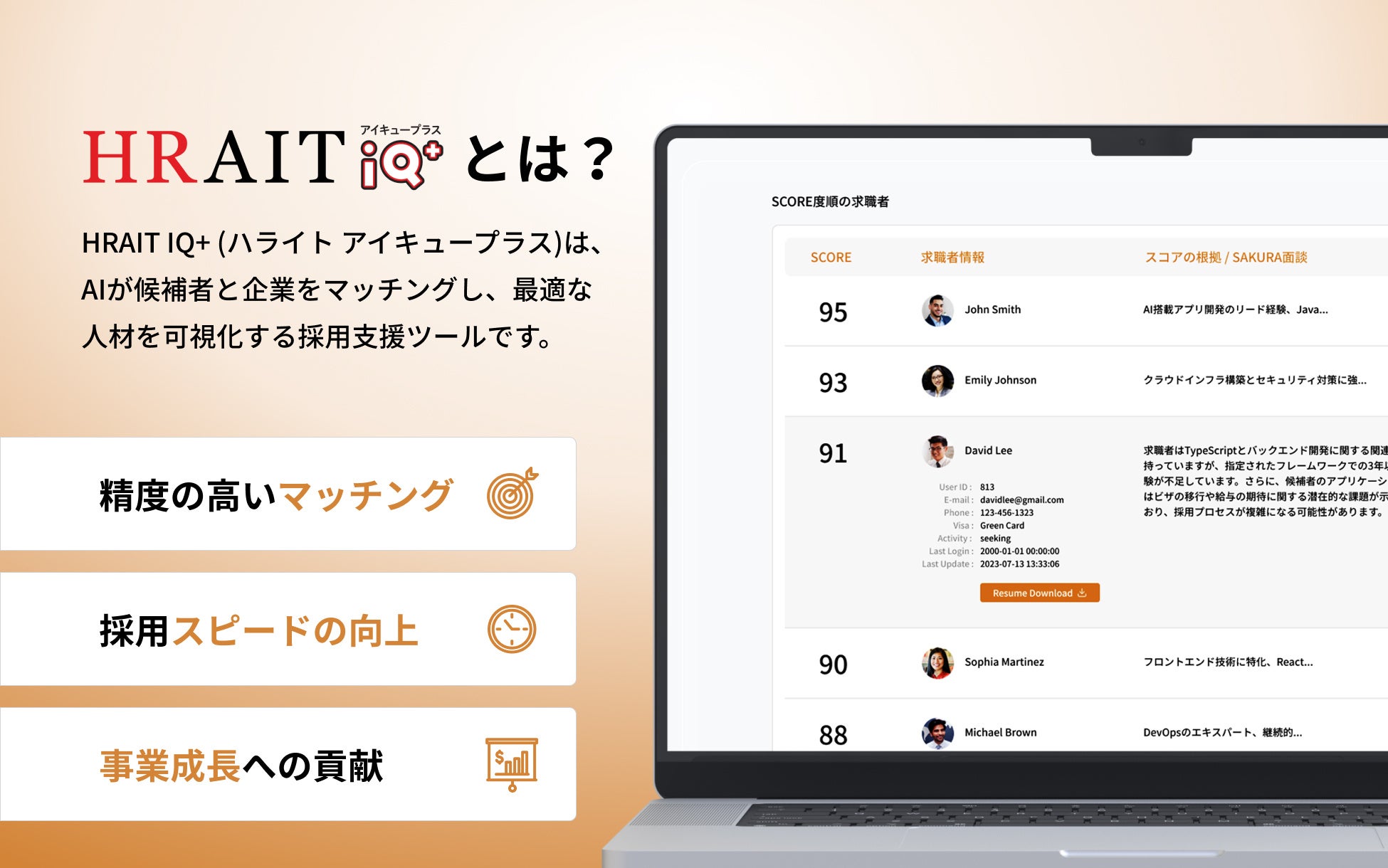 企業求人情報から総合分析し“長期活躍できる優れた人材”をスコアリング。採用支援ツール『HRAIT IQ+』リリース