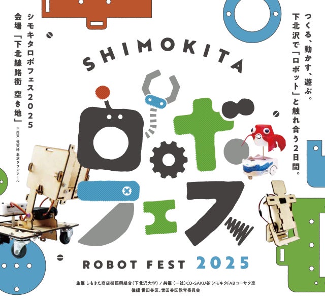 本イベントは、しもきた商店街振興組合(理事長・長沼洋一郎)が主催、下北沢でメイカースペース「シモキタFABコーサク室」を運営する一般社団法人CO-SAKU谷(東京都世田谷区/代表理事・高橋明子)が共催します。企画・運営には、下北沢の商店会をはじめ、町会、地域団体や企業、学生団体など、地域社会の多様な担い手たちが参画・協働。年齢や経験レベルを超えて技術や創造の魅力に触れ、遊ぶように楽しみながら体験する機会を、地域に幅広く提供します。