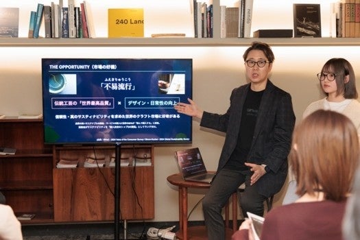 まずプロジェクトリードを務める大泉氏から、伝統工芸が「歴史の声(伝承)」に耳を澄まし、時代を超える美を生み出してきた中で、いまこの時代に押し寄せる「世界の声」を聴くことの重要性が提起されました 。続いて、越境ECプラットフォームを運営する株式会社ITOSHIOの代表、東海林氏が登壇し、「世界のクラフト市場がここ10年で右肩あがりに成長している中で 、世界でも最高峰とも言っていいくらいの品質・耐久性をもった 素晴らしい日本の伝統工芸品が、世界に届いていない」という現状を報告しました 。特に、新しい挑戦を阻む壁として「試作品開発のリスク」をどう乗り越えるかが大きな課題であったと語りました 。