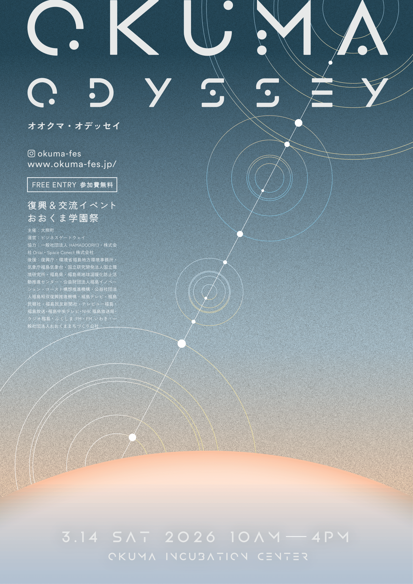大熊町は「大熊町復興交流イベント おおくま学園祭2026『OKUMA ODYSSEY』」を2026年3月14日(土)に大熊インキュベーションセンターにて開催いたします。
