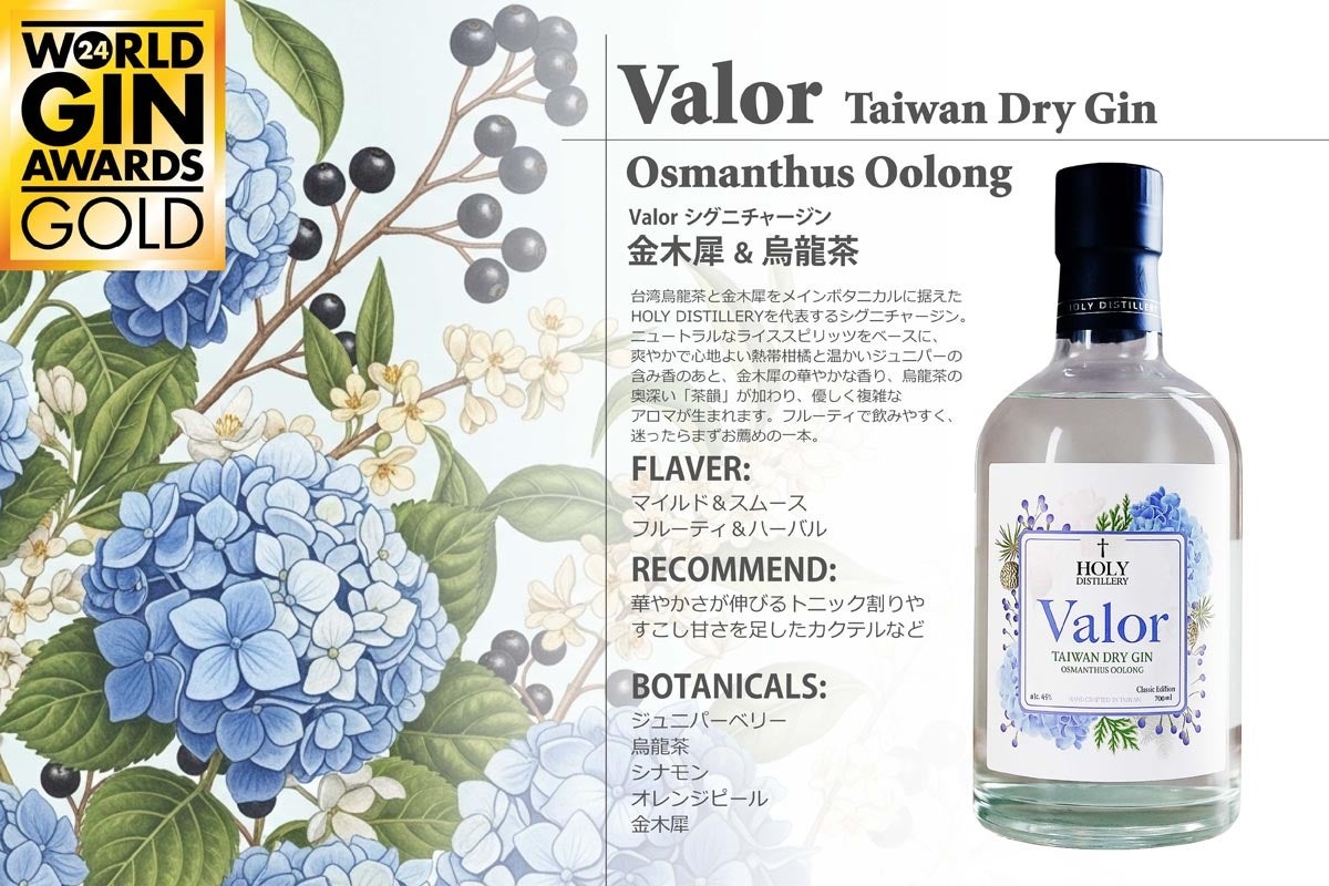そして2020年5月、台湾のクラフトジンに知悉した鄭哲宇SOSO氏の協力のもと、ついに「Holy Valor Gin Osmanthus Oolong」が誕生。
