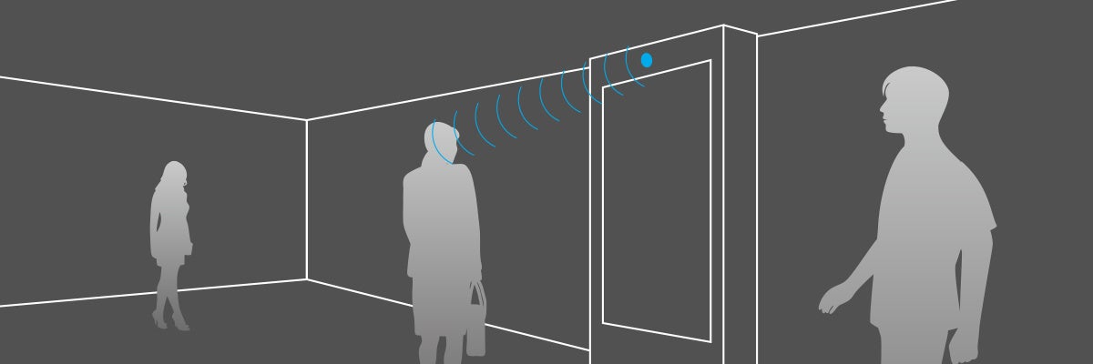 指向性スピーカーは「特定のエリアにのみ限定して音を届けるスピーカー」です。例えばイベント会場や複合施設など雑踏音が多い場所でも、特定の場所に特定の音を届けたいシーンで活躍します。