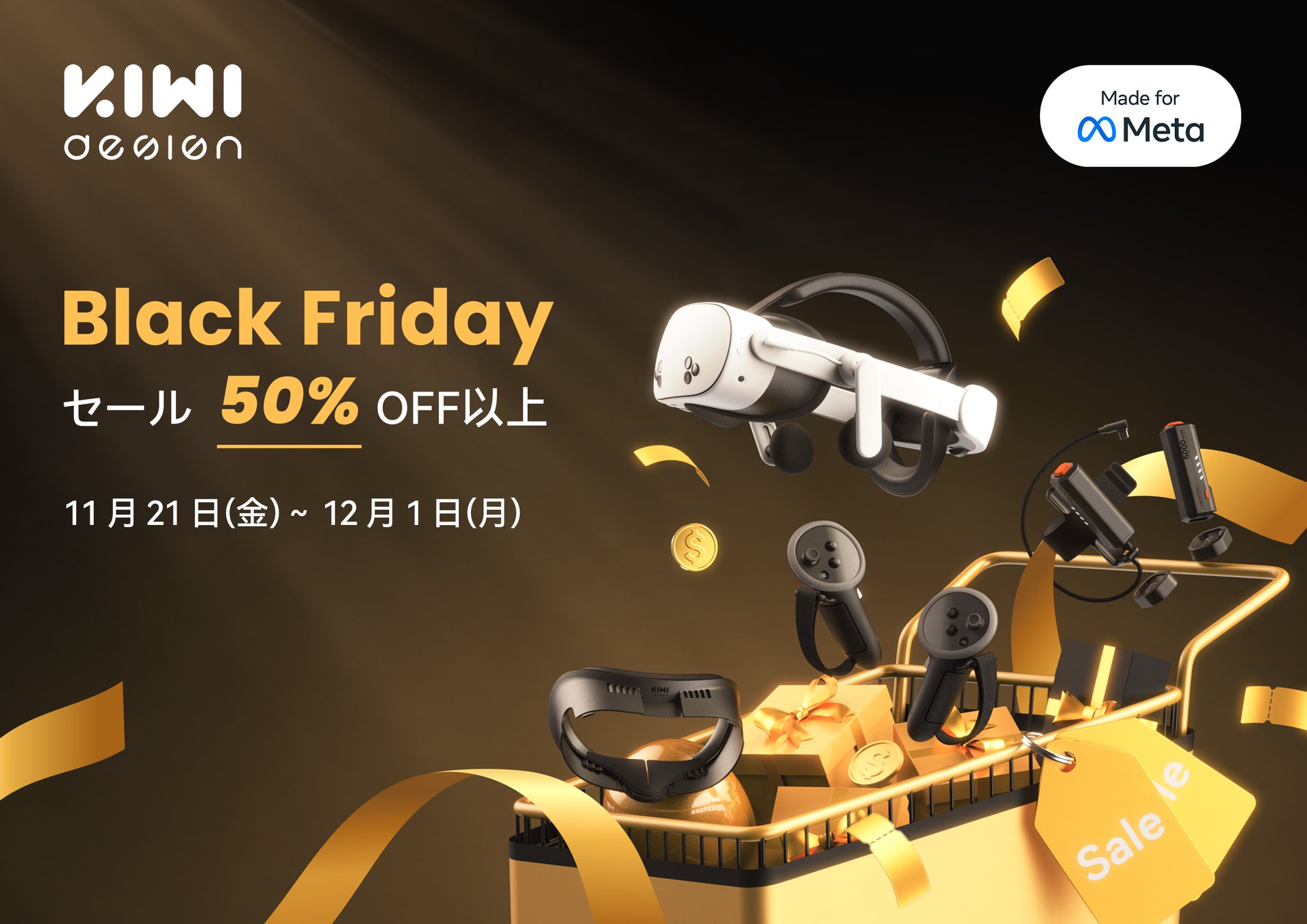 VRアクセサリーブランド KIWI design(本社:KIWIDESIGN(HONGKONG)LIMITED、以下 KIWI design)は、2025年ブラックフライデーに合わせ、Meta QuestシリーズおよびPlayStation®5向けアクセサリーを対象とした大規模セールを開催いたします。期間中は、同社の人気プロダクトをはじめとした多数のVR関連アイテムが、50%OFF以上のスペシャルプライスで提供されます。