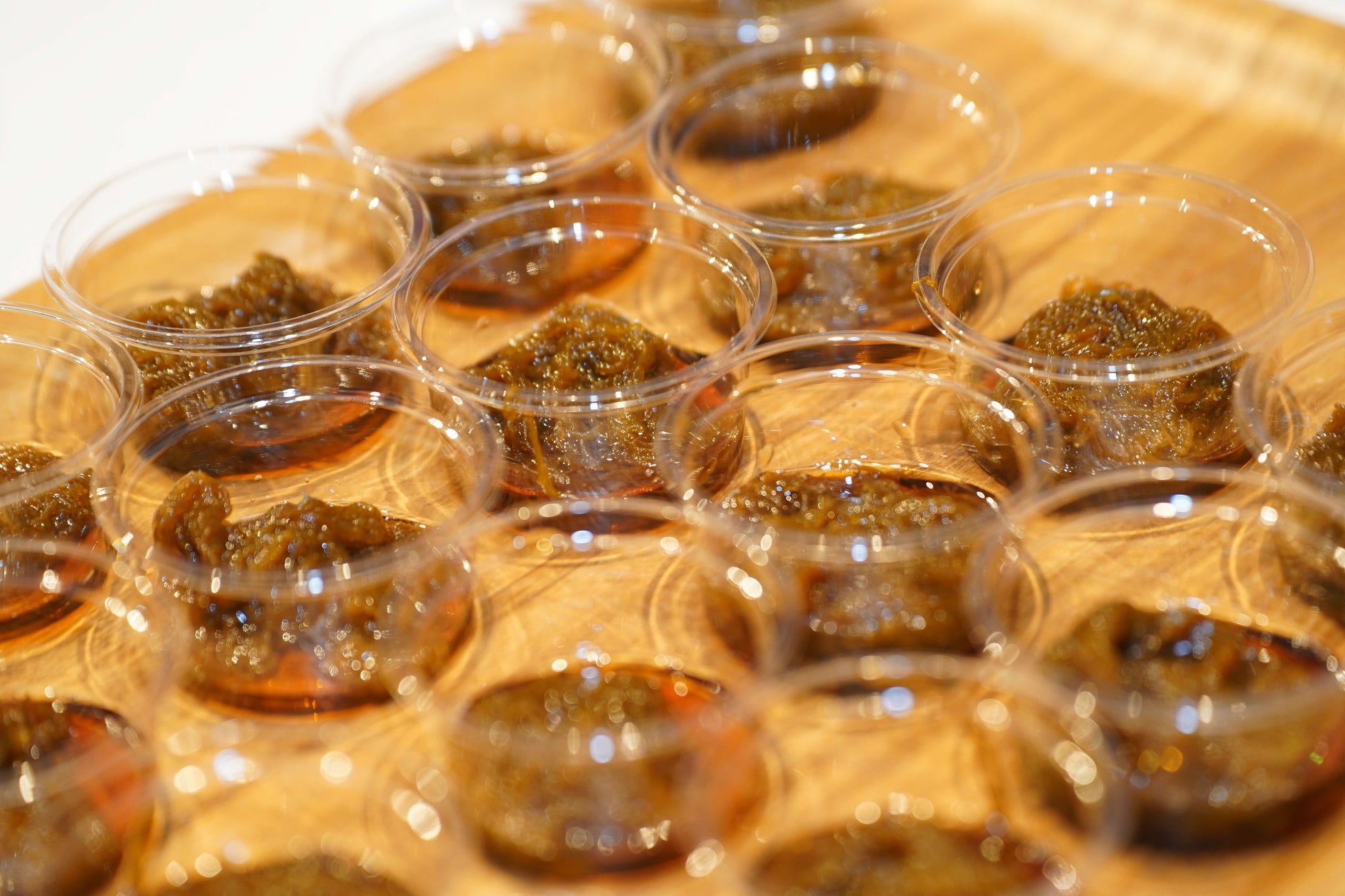 泡盛の酒かすで育った「藻」そのものを活用した新食材。カラスミのような濃厚なコクがあり、都内のフレンチの名店でも採用されるなど、美食家たちから注目を集めるサステナブルな旨味調味料です。