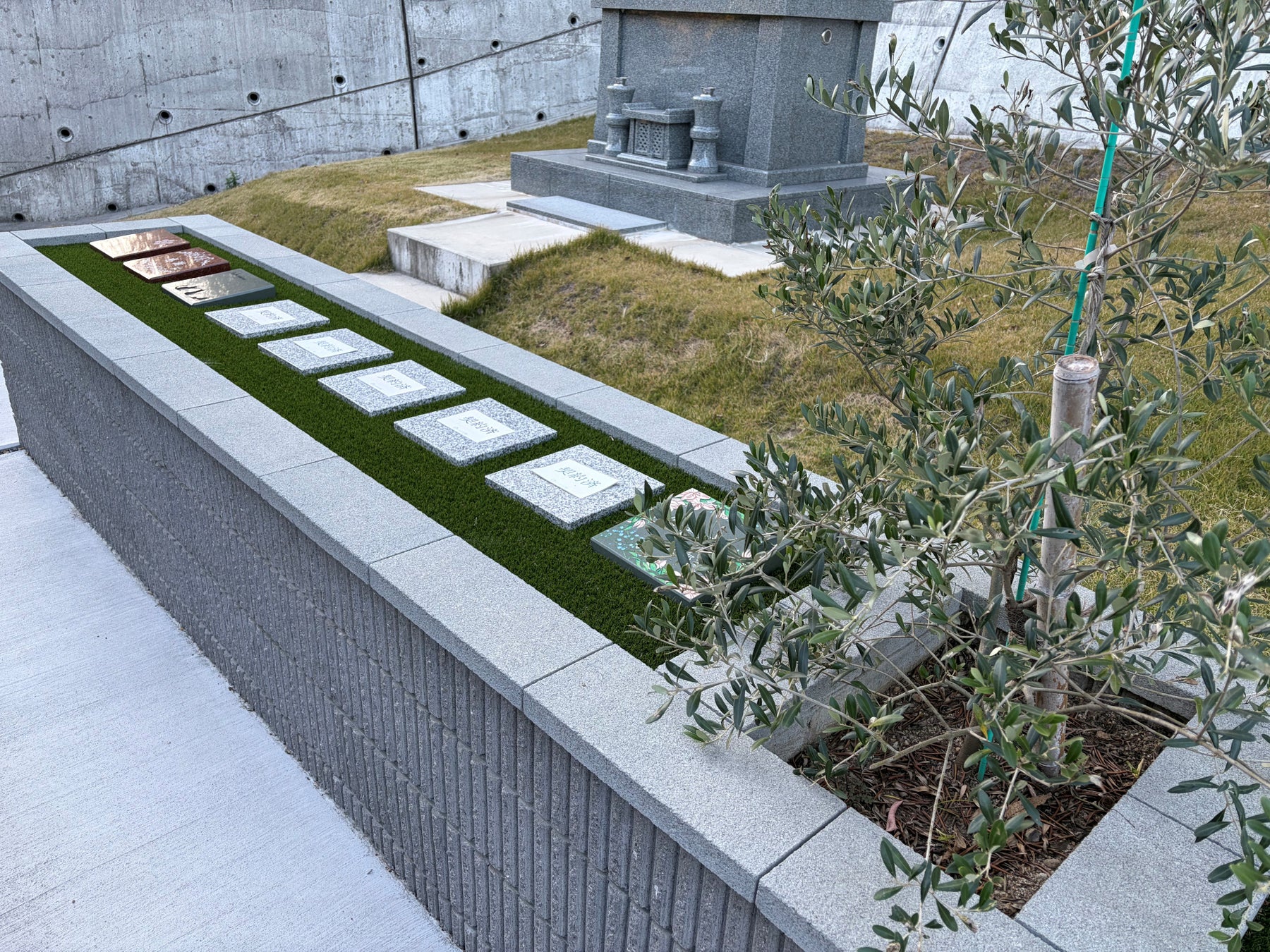 樹木葬は、シンボルツリーの周りに石のプレートを設置し、その下にお骨を納める自然葬形式です。自然の中で眠りたい方や、従来の墓石文化にこだわらない方に選ばれています。