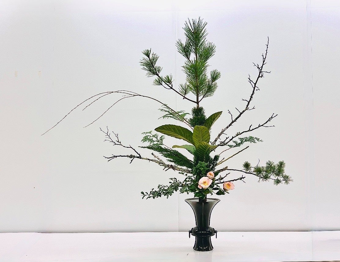池坊専宗氏の写真と日本の伝統文化、いけばなの粋である立花(りっか)のコラボレーション。華道家元池坊麻布橘会支所 2026年お正月装飾「はざま、生」を公開。