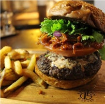贅沢に黒毛和牛をたっぷりと使用したハンバーガー!! ちょっぴり酸味がきいたセミドライトマトとオリーブのディップトッピング!!ガチうまい!! 他で味わえない旨味を当店でお楽しみ下さい♪