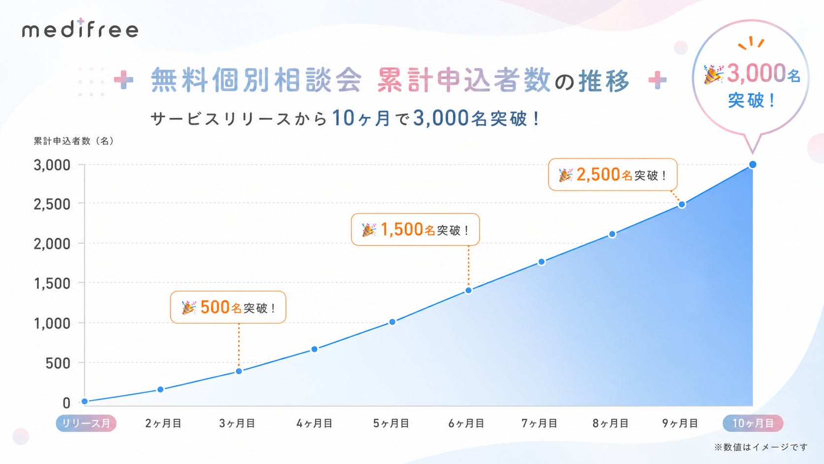 メディフリは、こうした看護師が抱える構造的な悩みに対し、「転職」ではなく「自分で働き方を選び取るスキル」を身につけてもらうという独自のアプローチで応えるサービスです。この新しさが共感を呼び、SNSや受講生からの口コミを中心に申込者が急増。リリースからわずか10ヶ月で3,000名突破という結果につながりました。