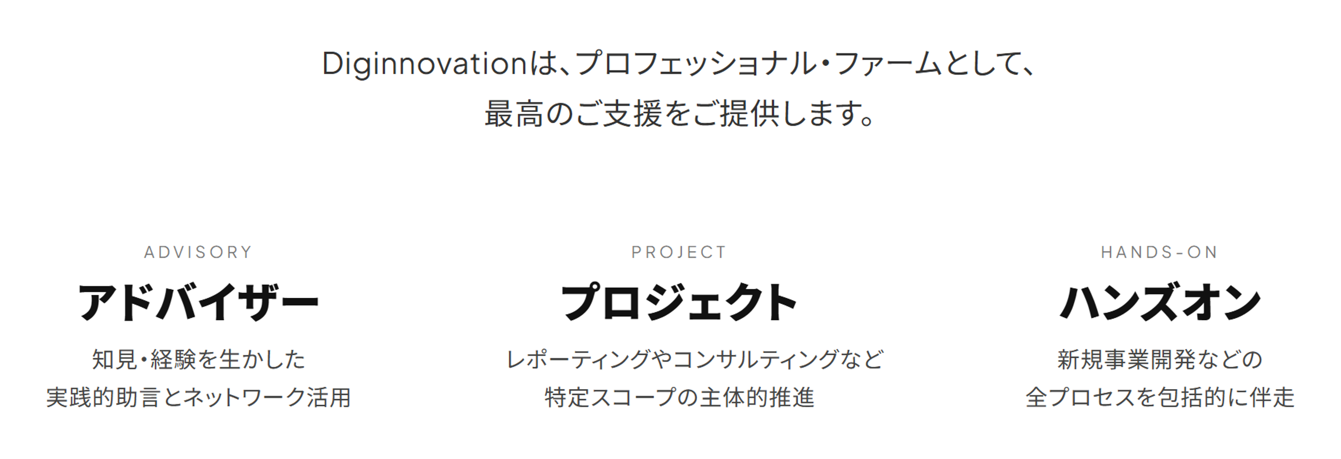 Diginnovationは、自らの事業開発・経営で培った知見、技術、ネットワークを駆使し、