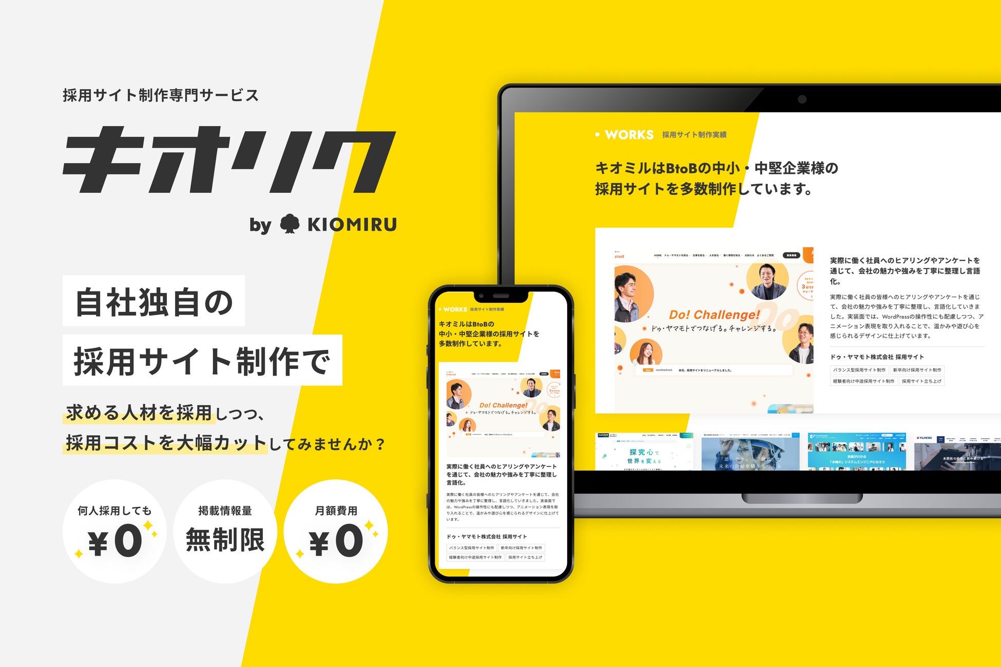 しかし、企業が抱える課題はそれだけではありません。多くの企業が「採用」の側面でも同様に大きな悩みを抱えています。そこでキオミルは、こうした採用課題の解決に真正面から取り組むため、採用サイト制作に特化した新サービス「キオリク」を立ち上げました。