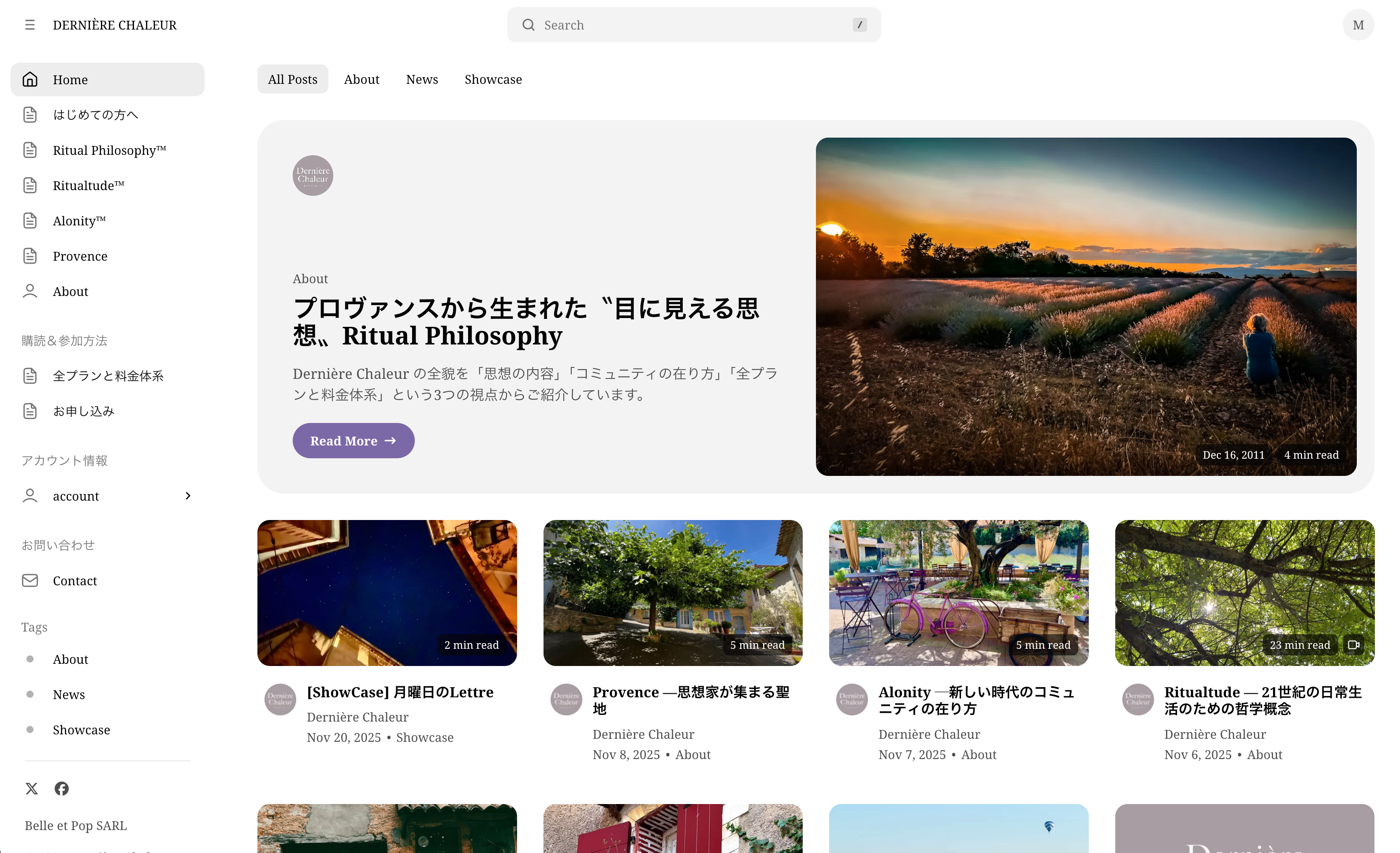 BELLE ET POP SARL(本社:フランス・アンティーブ)は、新しい思想概念「Ritualtude(リチュアルチュード)」を発表いたします。Ritualtude は、21世紀後半の「一人一思想社会」に向けて、エピクロスからハンナ・アーレントへと連なる2300年の叡智をさらに昇華させた、日常を儀式に変える実践思想です。この思想を体現する思想ブランド『DERNIÈRE CHALEUR(デルニエール シャルール)』は、本日、2025年12月22日より日本市場での本格展開を開始いたします。