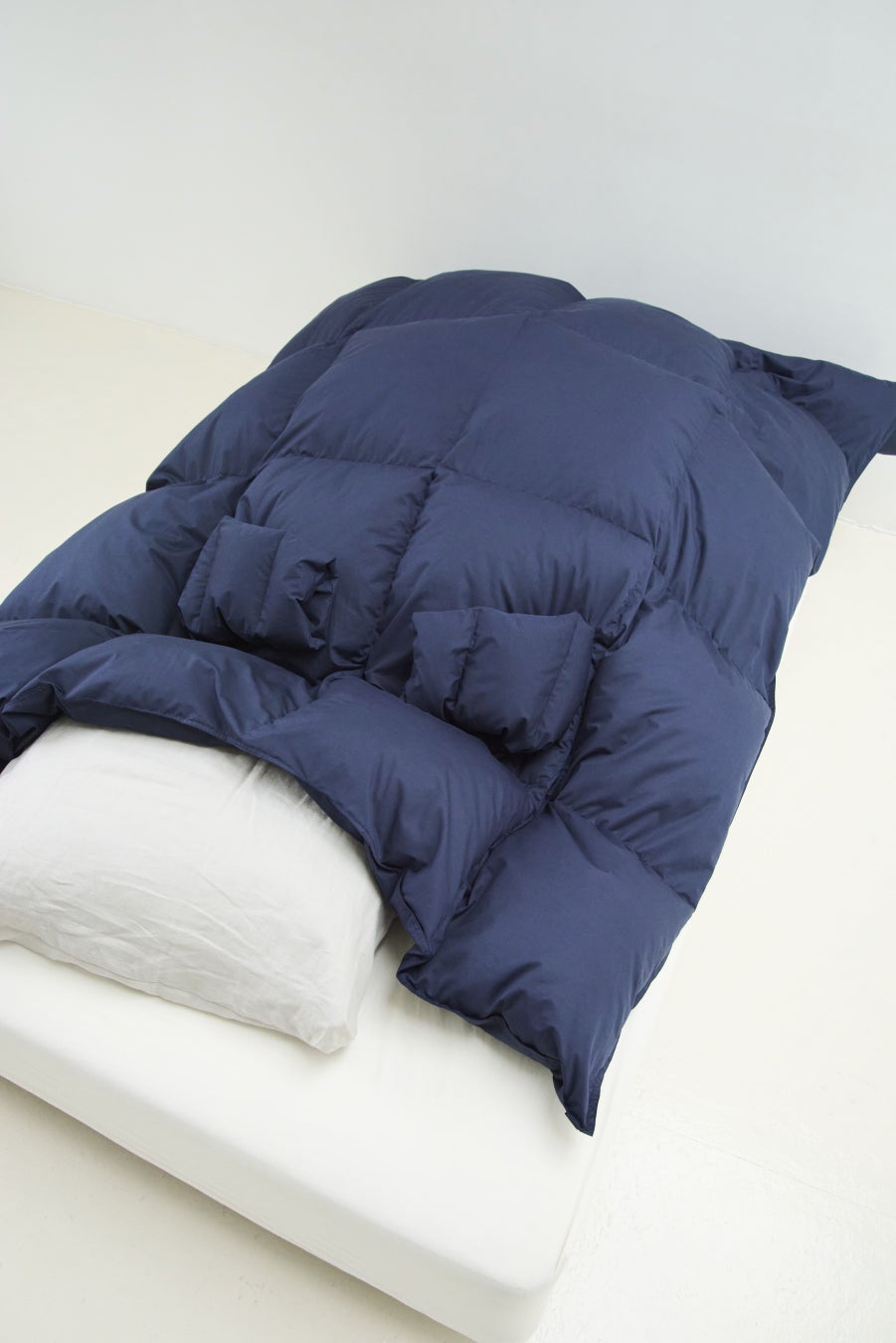 袖付きのため、読書やスマホ操作なども布団をずらさず快適に行えます。羽毛ならではの高い保温性と軽さを両立し、寝る前のくつろぎ時間から就寝時まで暖かくサポート、キャンプなど屋外でも頼れる1枚です。