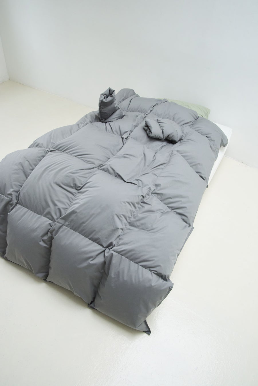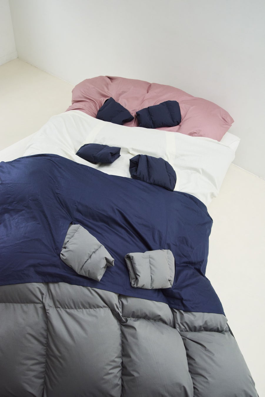 布団の形状に袖をつけることで(※)、羽毛布団に包まれたまま日常を過ごせる、これまでにない生活体験をもたらします。