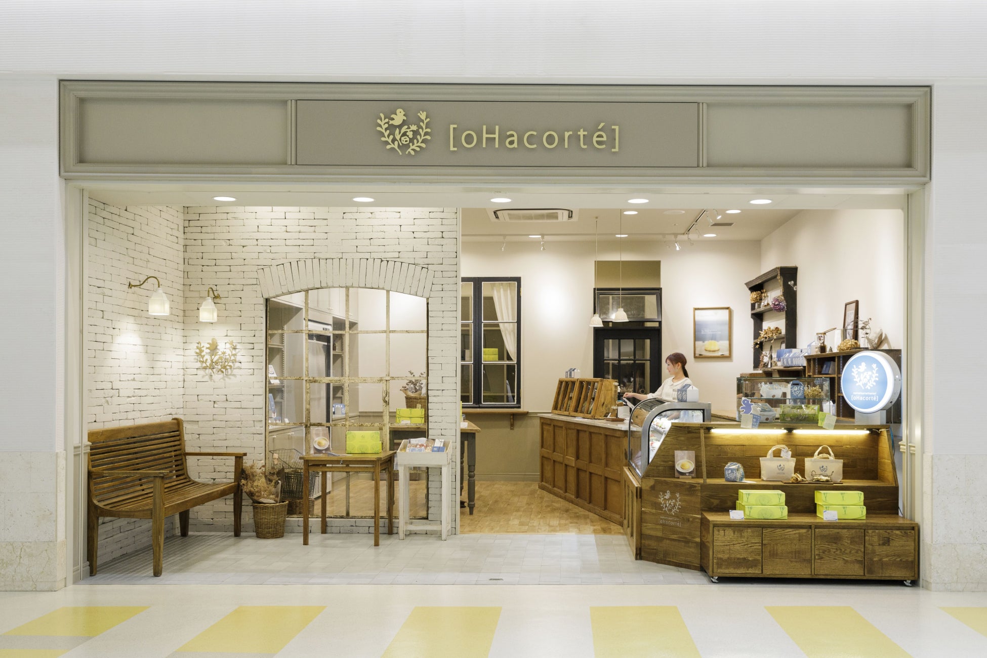 那覇空港内の直営店「オハコルテ那覇空港店」では、クラシックで上質な内装の明るい空間に、オハコルテの世界観をそのまま表現。ヒラミーレモンケーキを中心とした焼き菓子ギフト商品を揃えています。