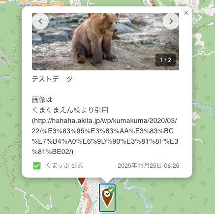 「くまっぷ」は、誰でも簡単にクマの目撃・痕跡・被害情報を投稿・閲覧できる地図サービスです