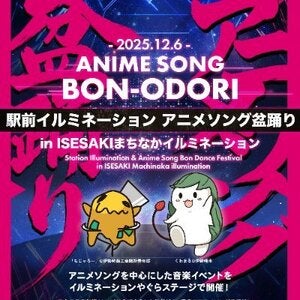 伊勢崎ポップカルチャープロジェクト(群馬県伊勢崎市)は、2025年12月6日(土)に群馬県伊勢崎駅前にて「駅前イルミネーション アニメソング盆踊り」を開催します。当団体は「ISESAKIまちなかイルミネーション」にて、群馬県伊勢崎市商工労働課まちなか活性化係と連携し、3つの音楽イベントを主催しています。
